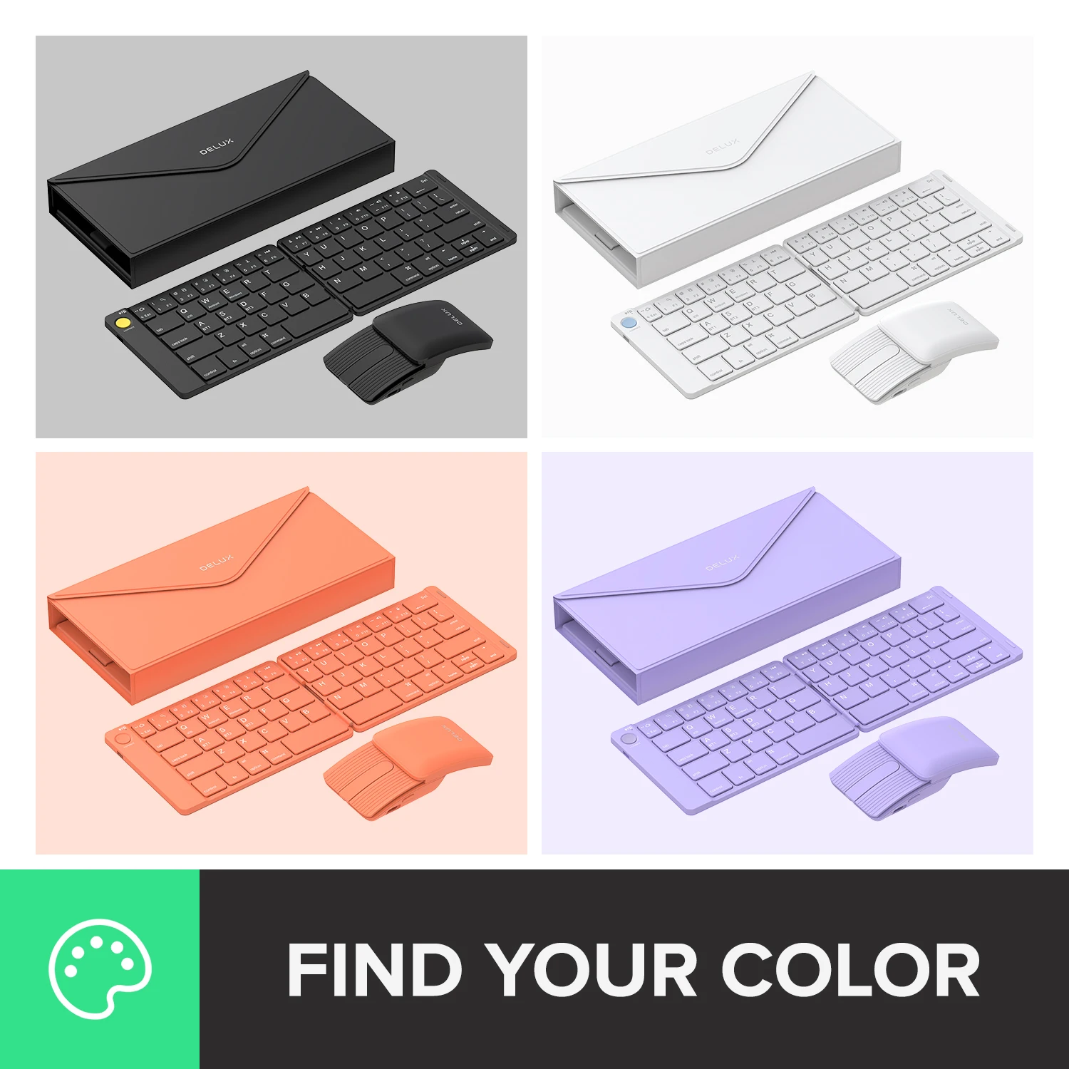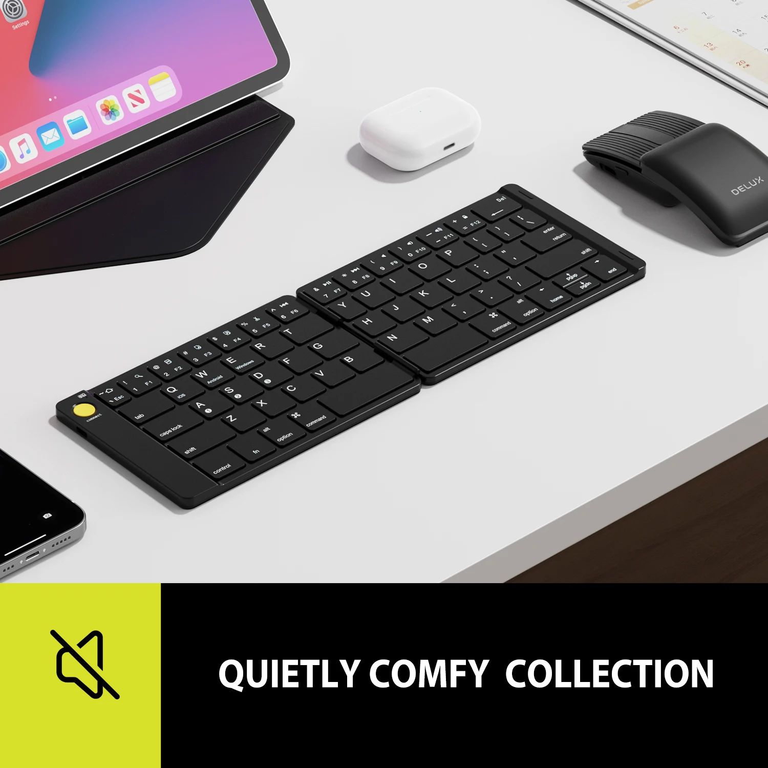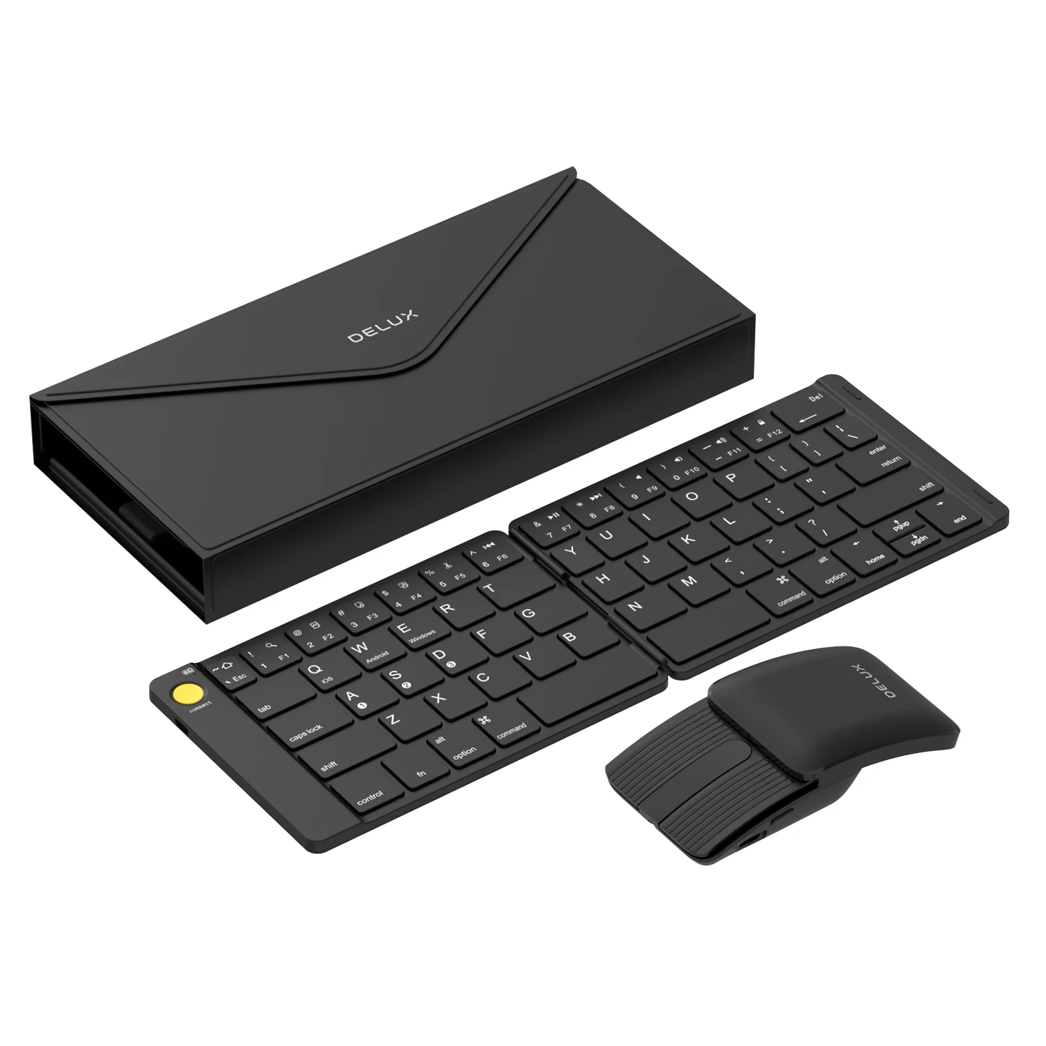 Comprar Delux-peine de teclado y ratón portátil y multidispositivo, dispositivo inalámbrico con Bluetooth, recargable para Windows, Mac y Android