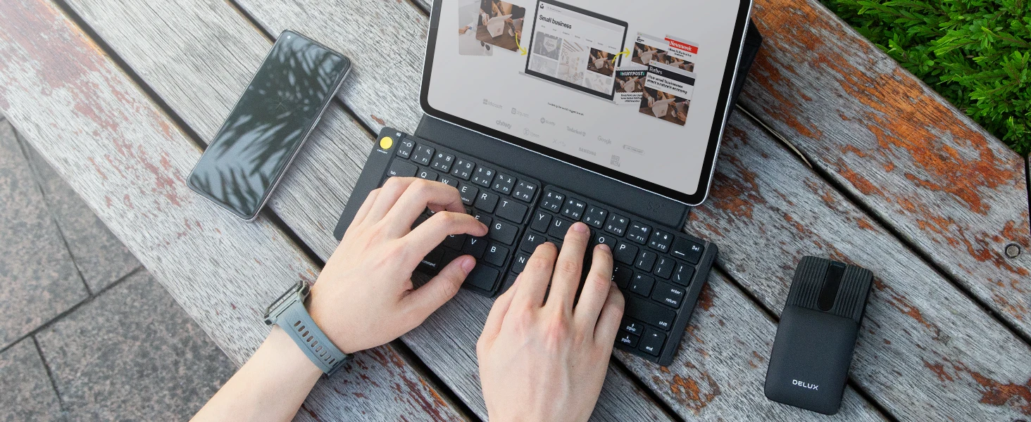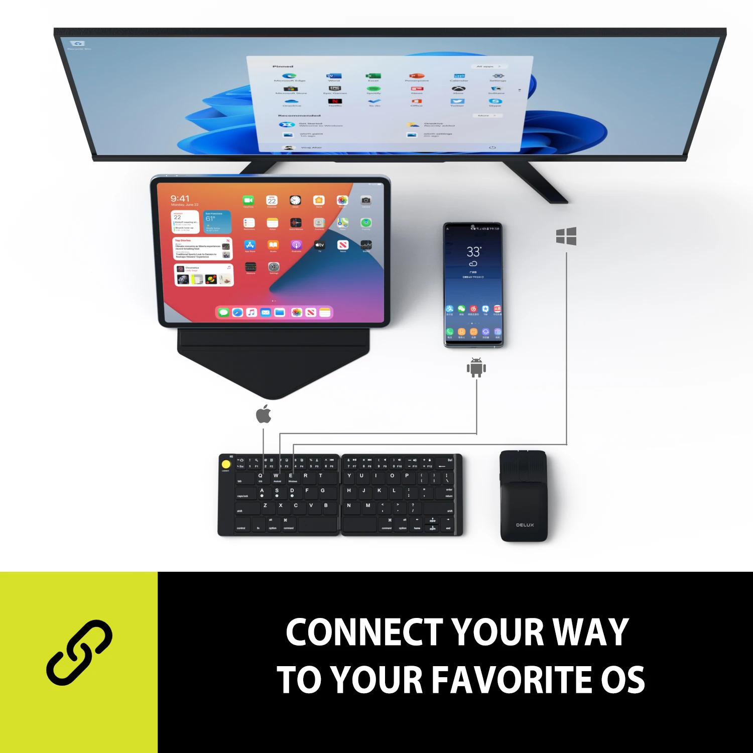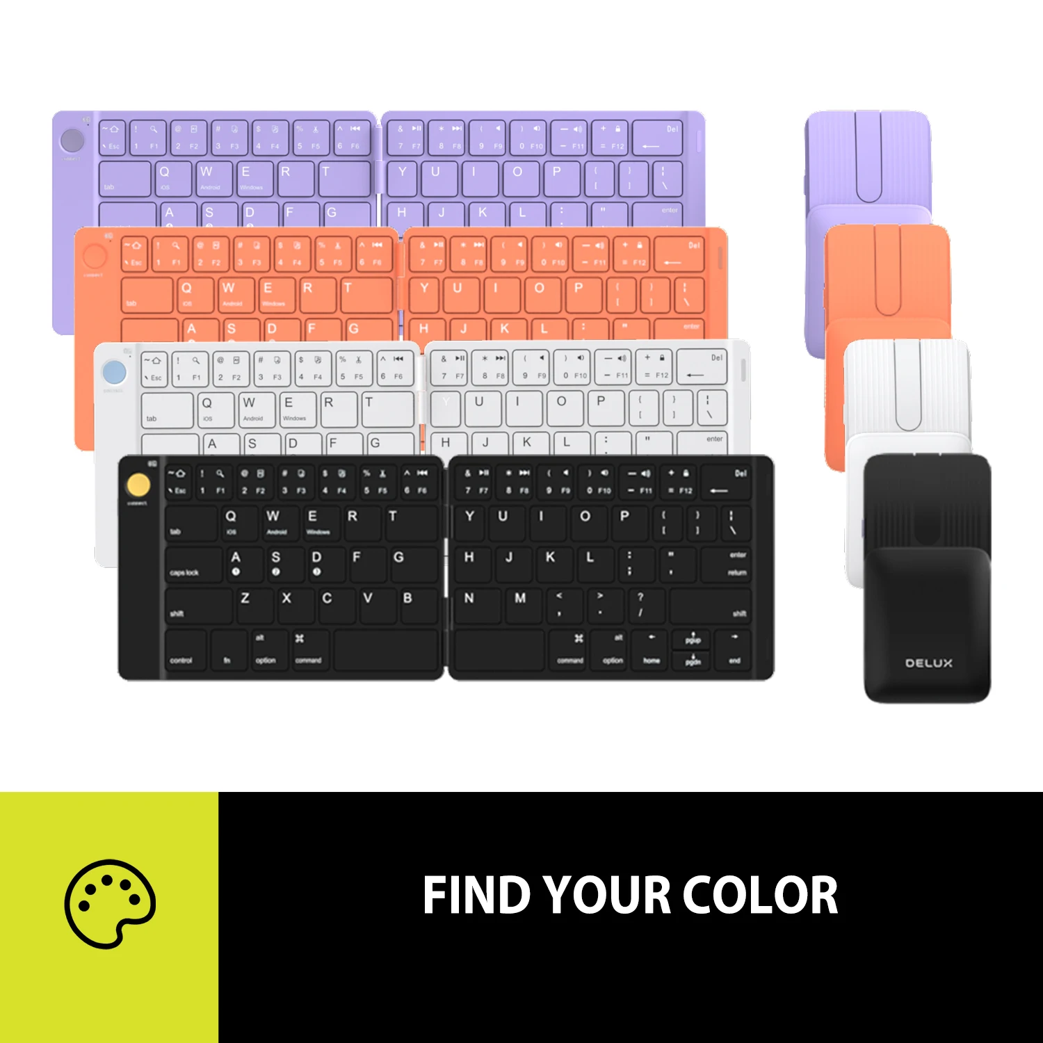 Comprar Delux-peine de teclado y ratón portátil y multidispositivo, dispositivo inalámbrico con Bluetooth, recargable para Windows, Mac y Android