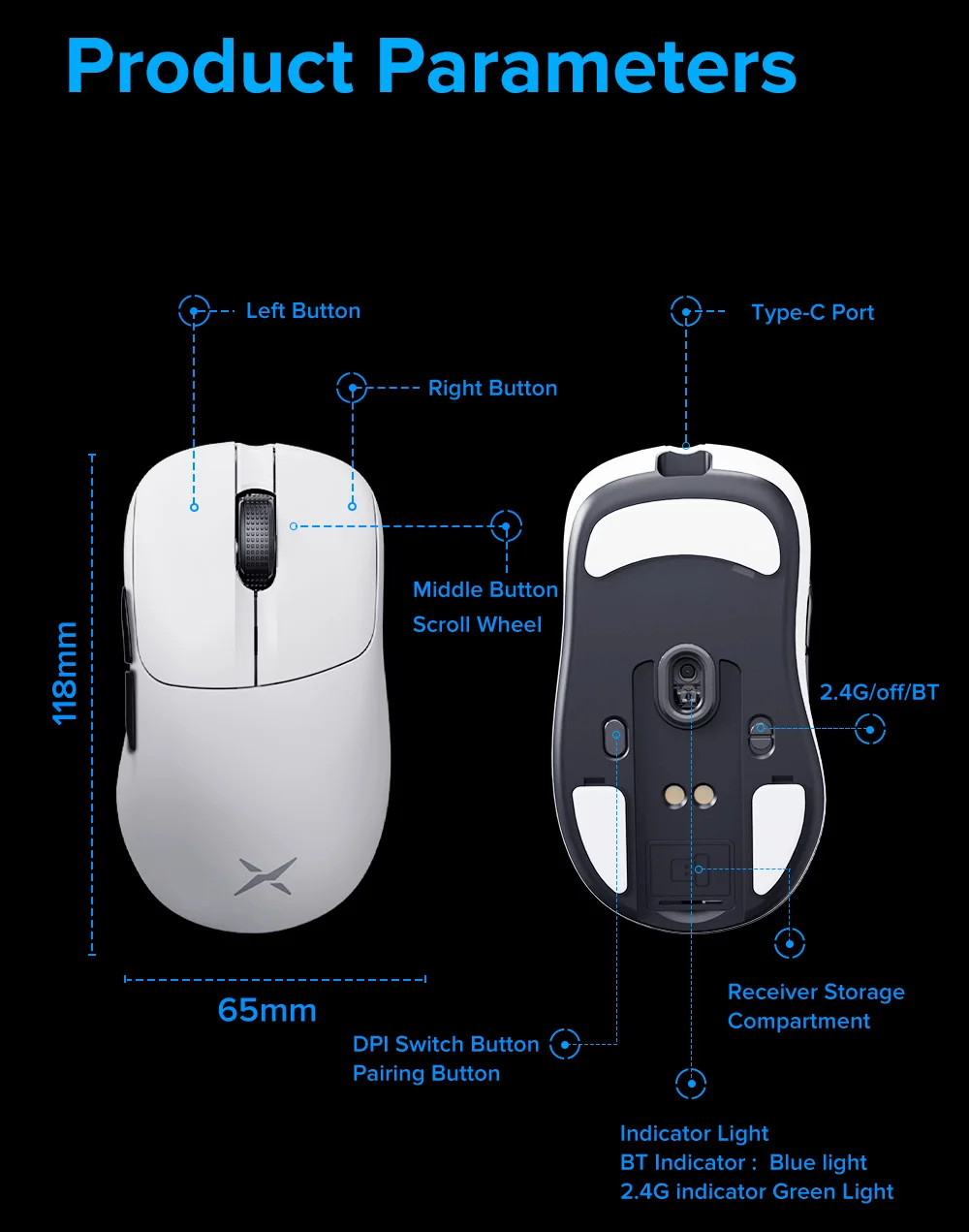 · Conexiones: 2,4G inalámbrico/Typc-C con cable/Bluetooth