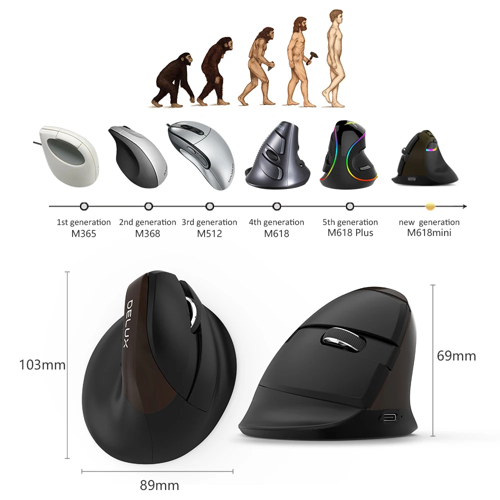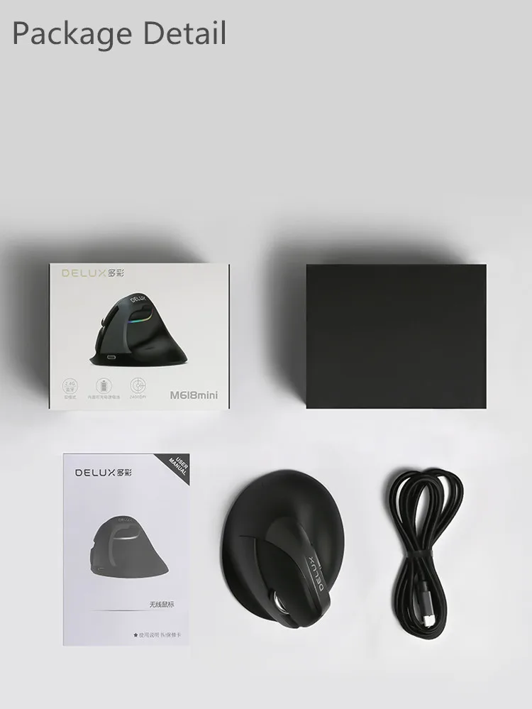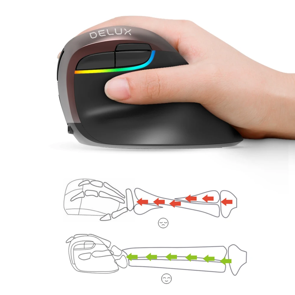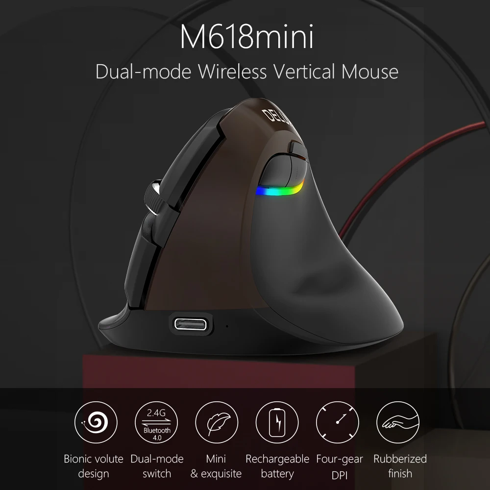 Comprar Delux-ratón inalámbrico M618Mini para oficina, periférico Vertical con Bluetooth, USB, 2,4 GHz, RGB, recargable, silencioso