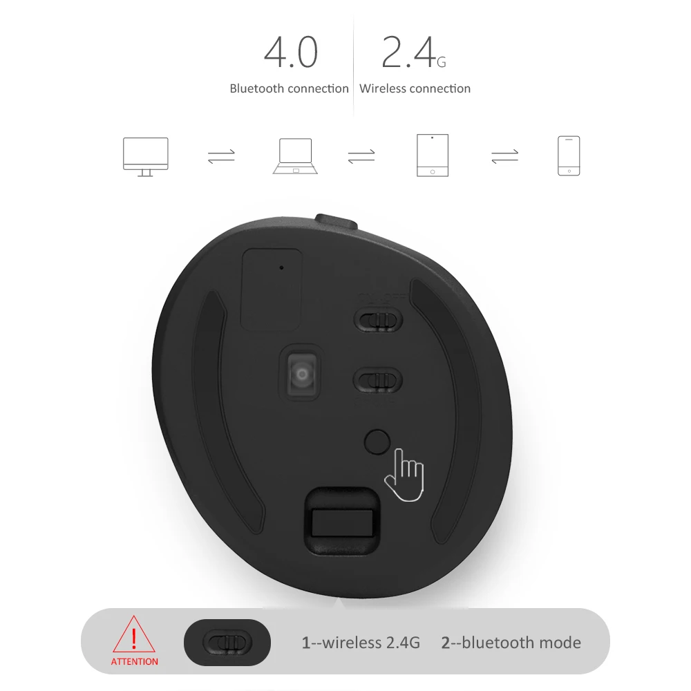 M618 mini es un ratón vertical ergonómico con dos modos, puede cambiar libremente entre modo inalámbrico y bluetooth.