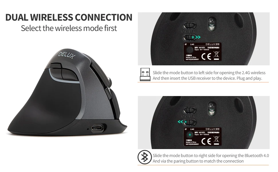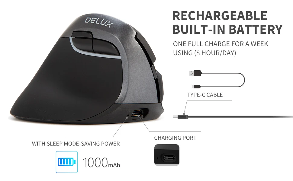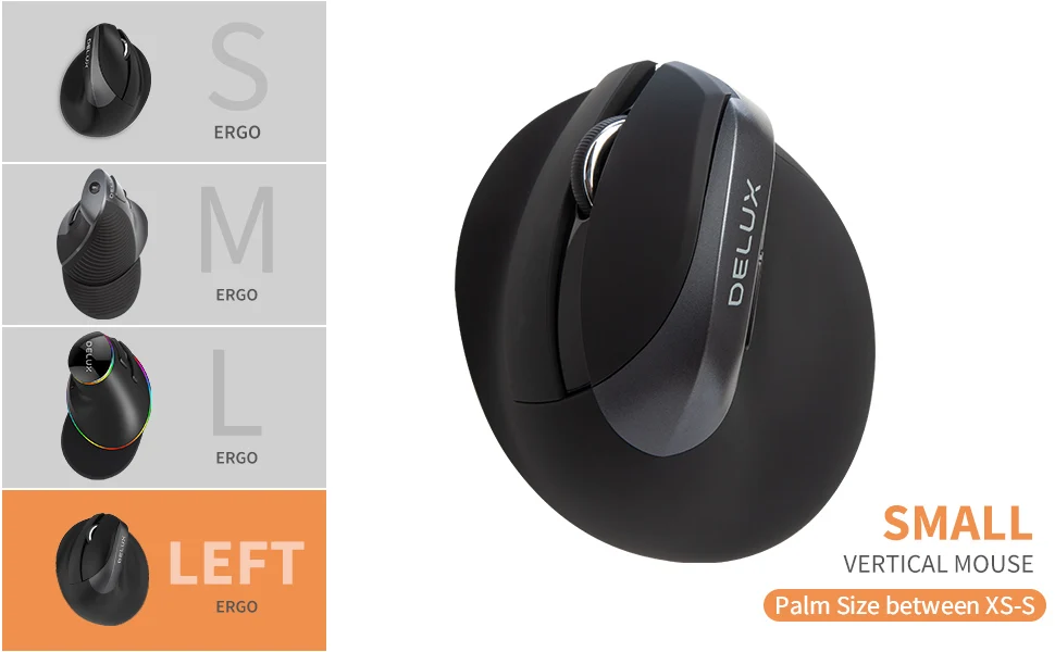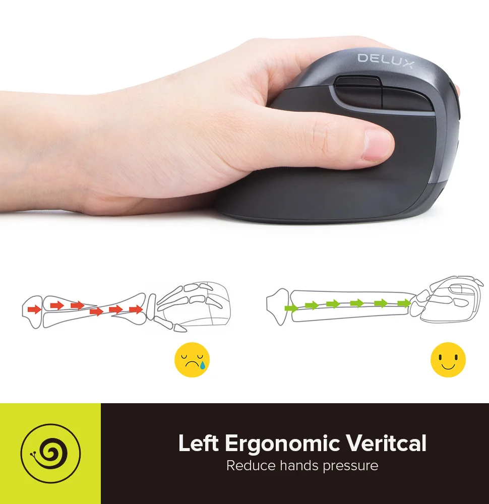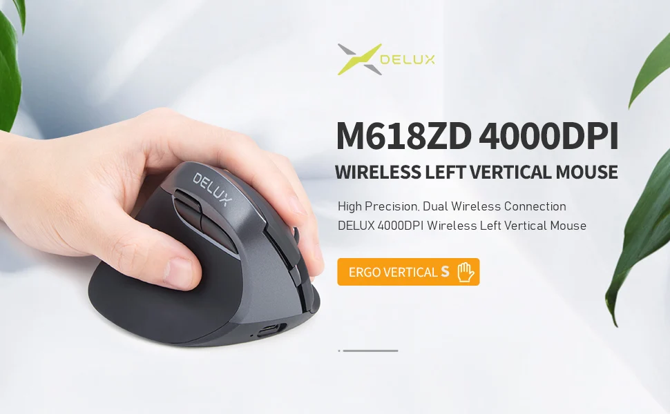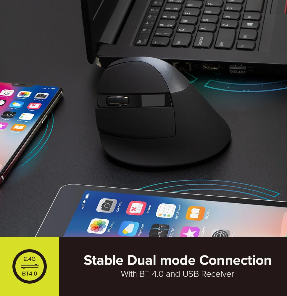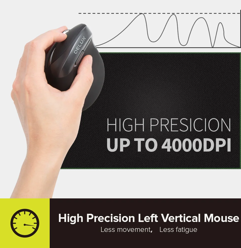 Alta precisión. Conexión inalámbrica dual DELUX 4000DPI Ratón vertical izquierdo inalámbrico