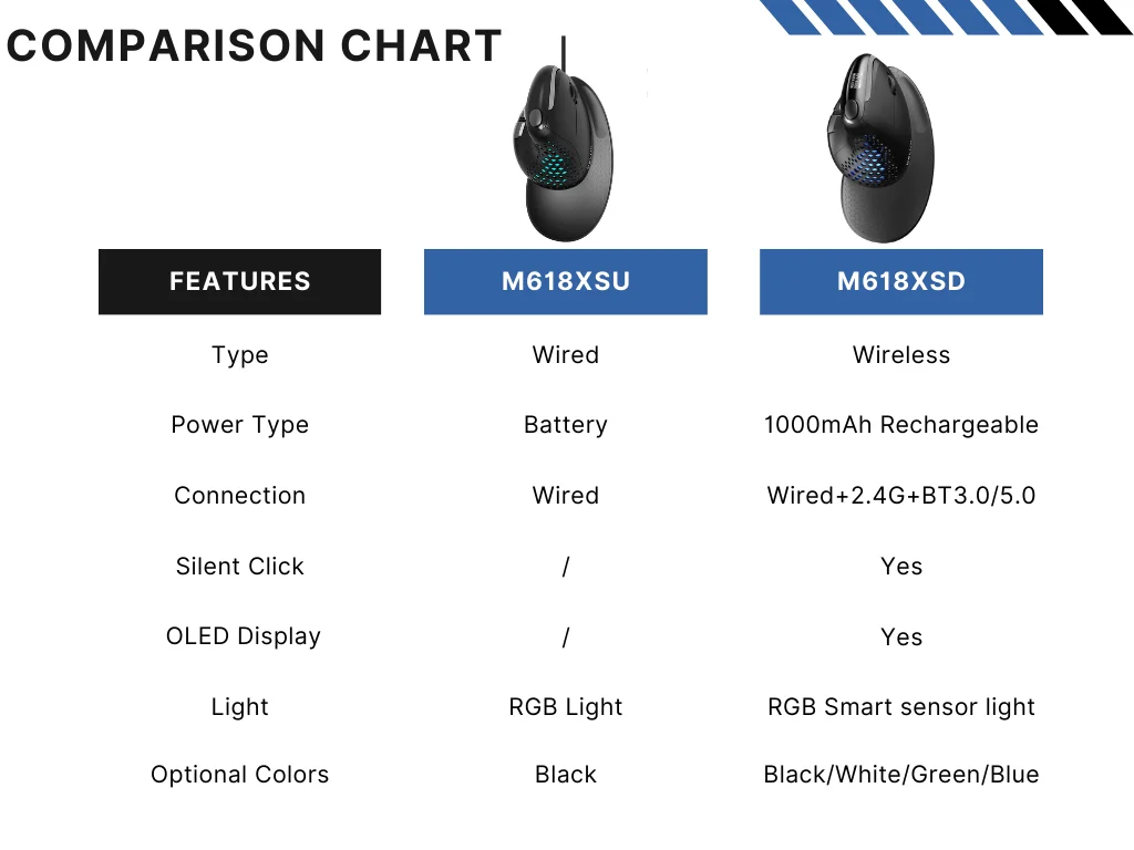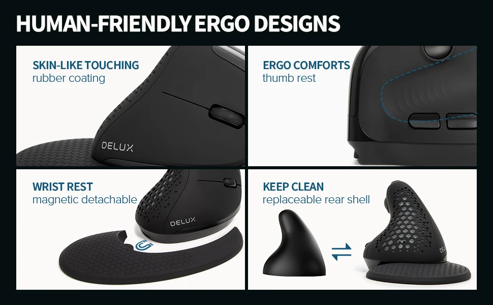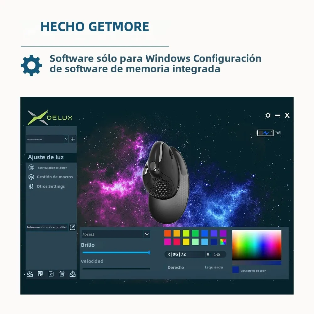 Comprar Delux Seeker M618XSD ratón Vertical ergonómico pantalla OLED USB inalámbrico + BT 5,0 recargable 1000hz Berichtsrate para PC portátil