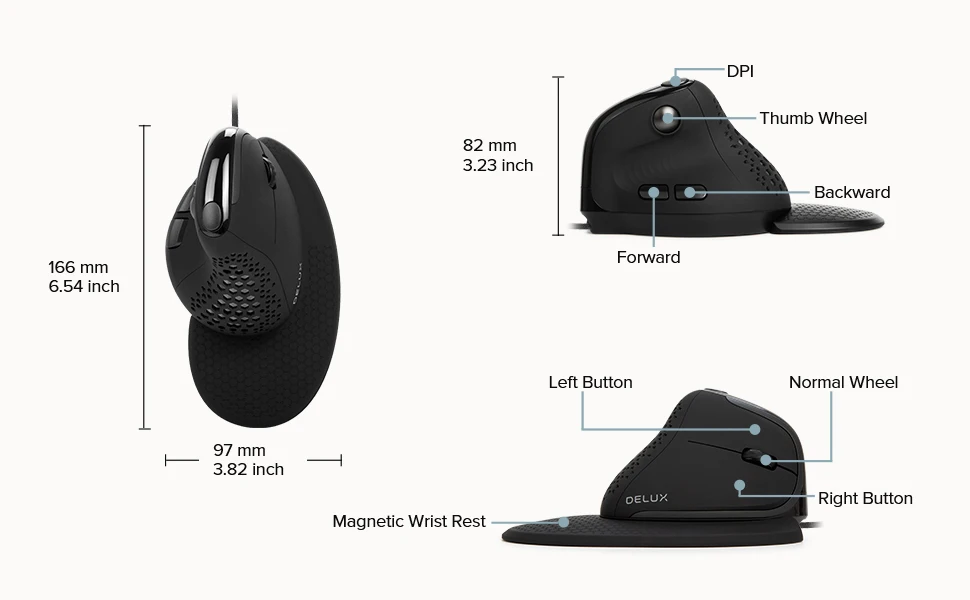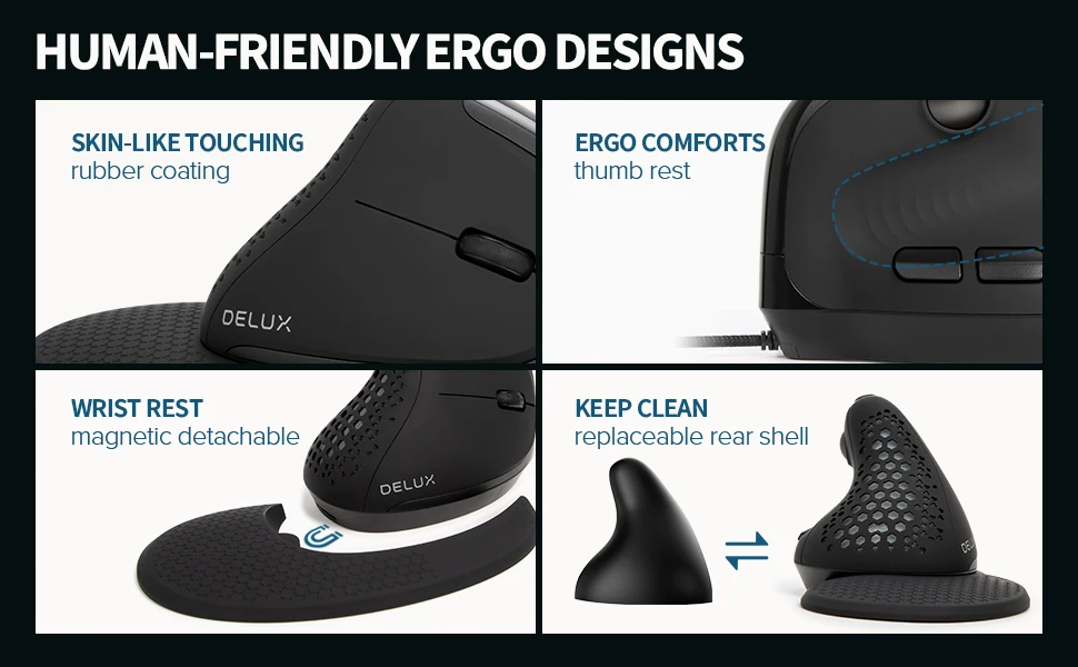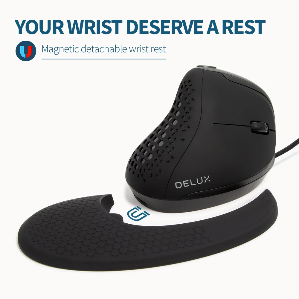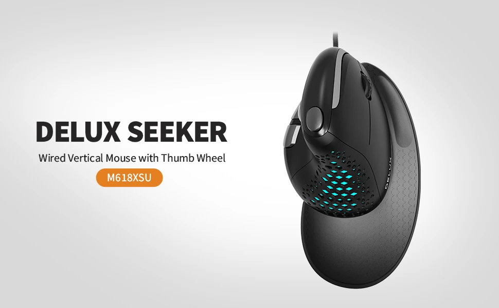 Comprar Delux Seeker-ratón Vertical M618XSU para juegos, periférico ergonómico con cable, luz RGB, cubierta trasera extraíble, 4000DPI, para ordenador portátil