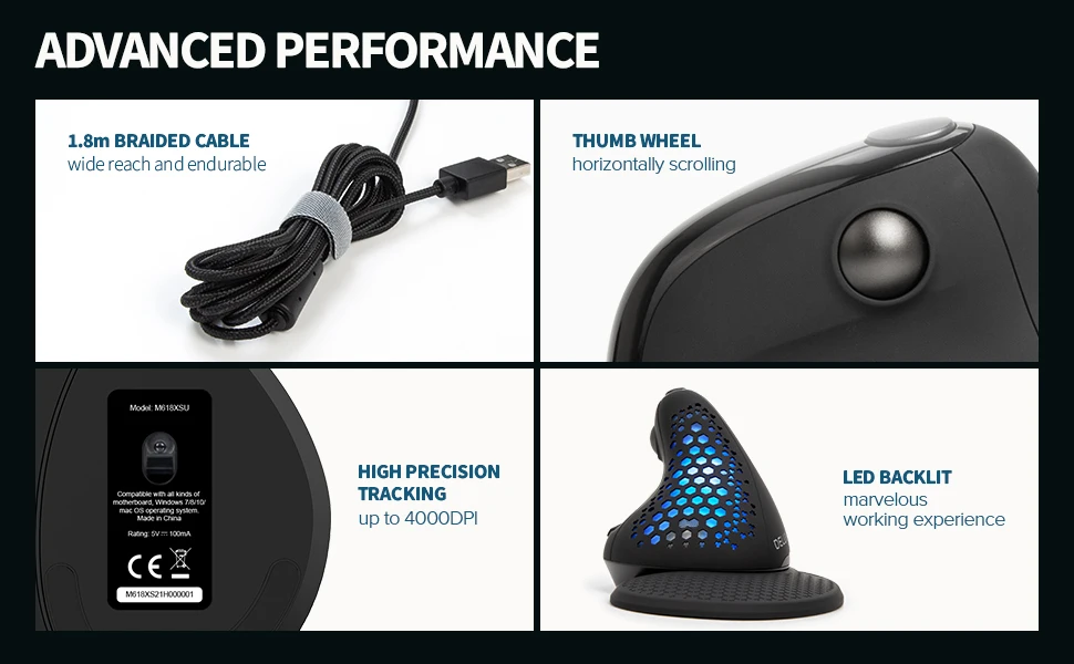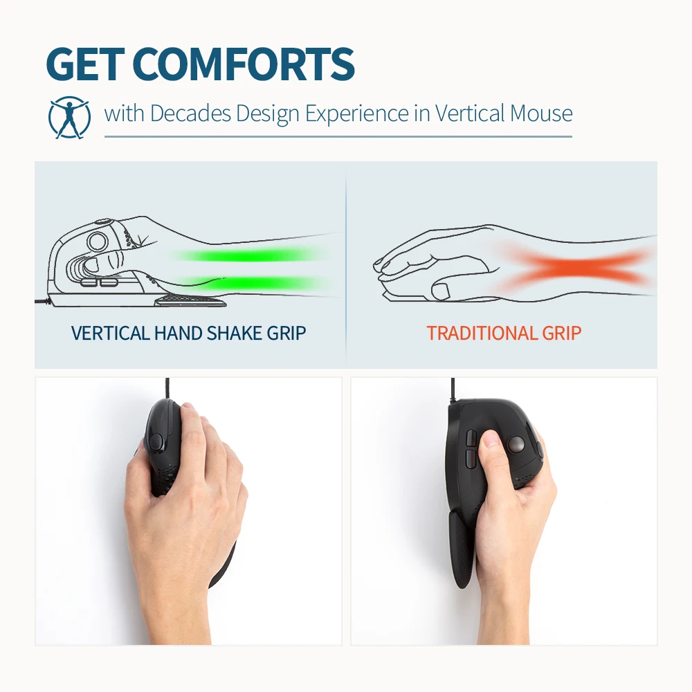 Ratón vertical con cable con rueda de pulgar