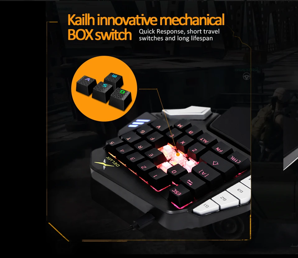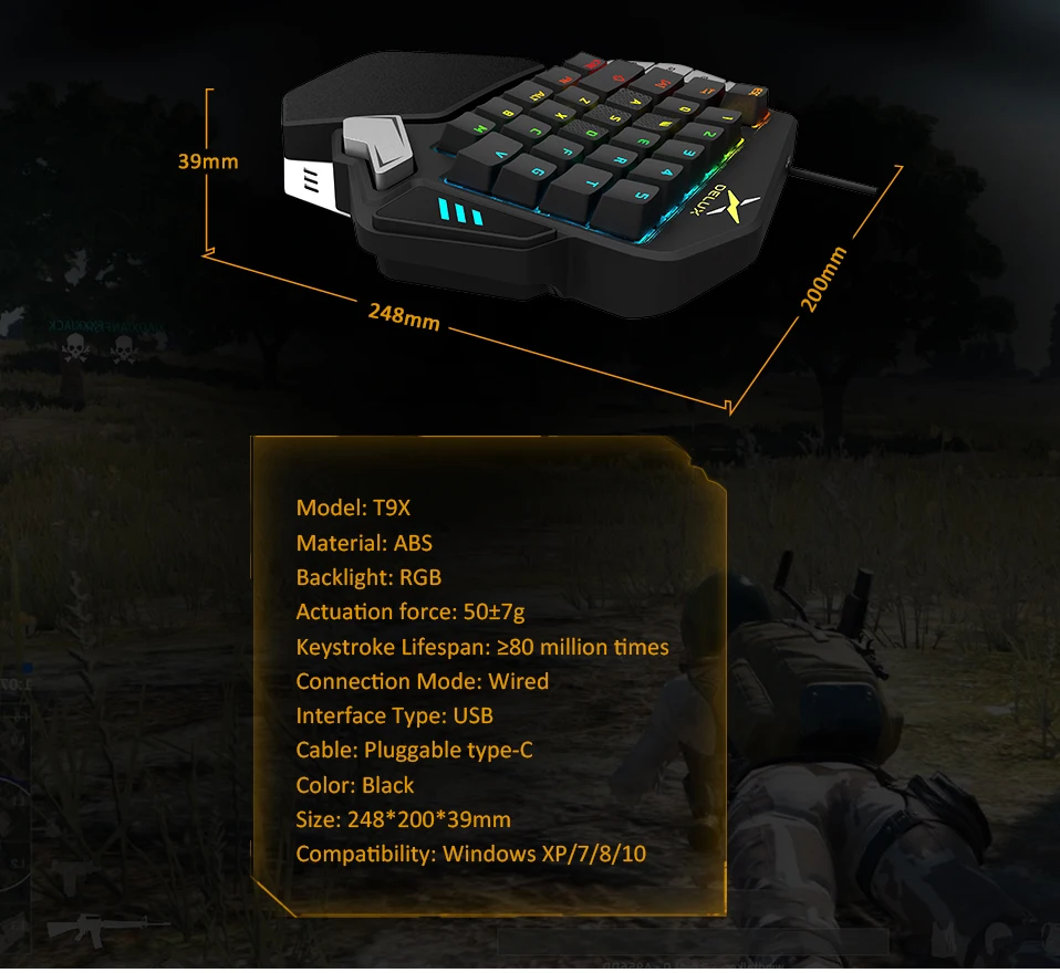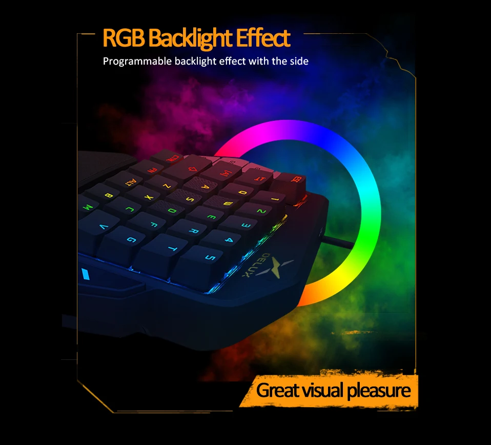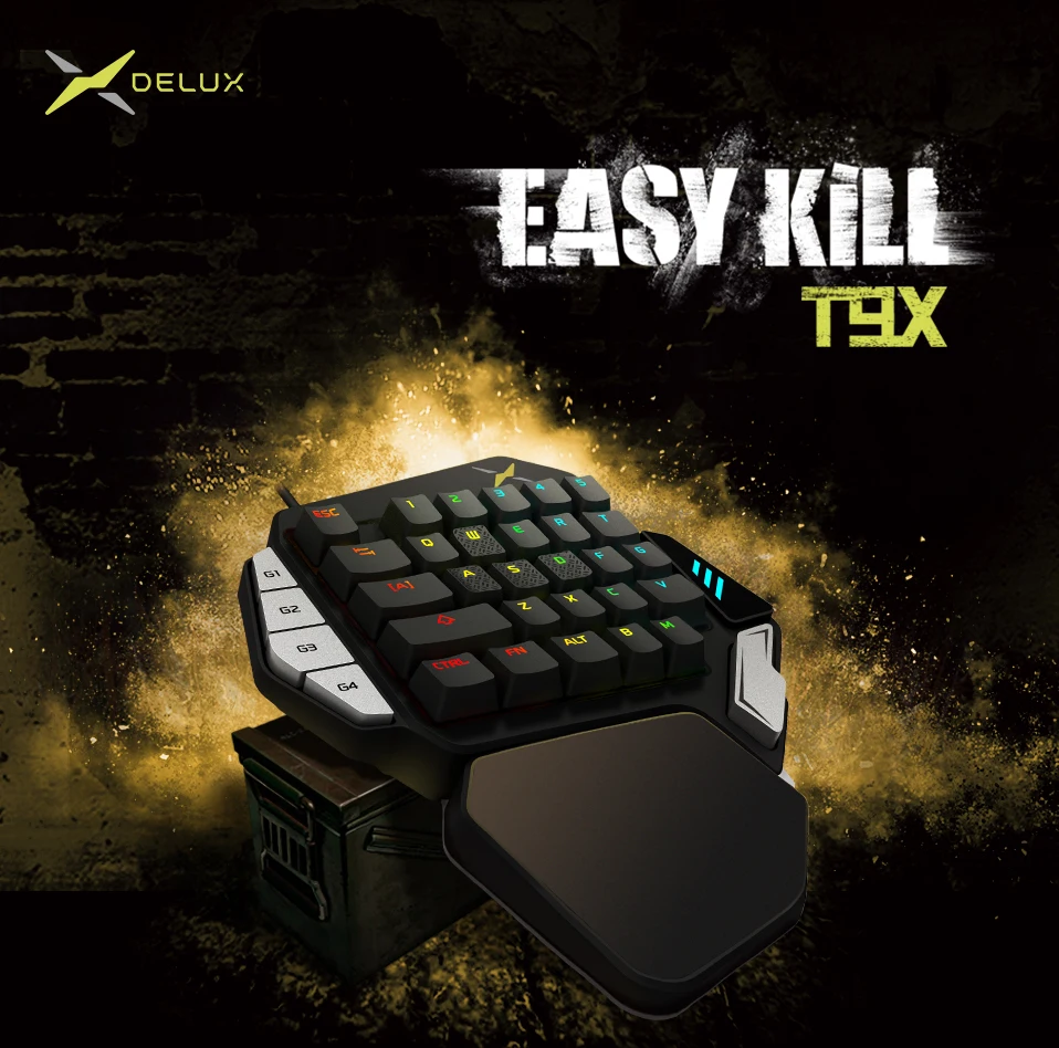 Comprar Delux T9X-Teclado mecánico de Gaming para una sola mano completamente programable con cable USB, retroiluminación RGB para PUBG LOL e-sports