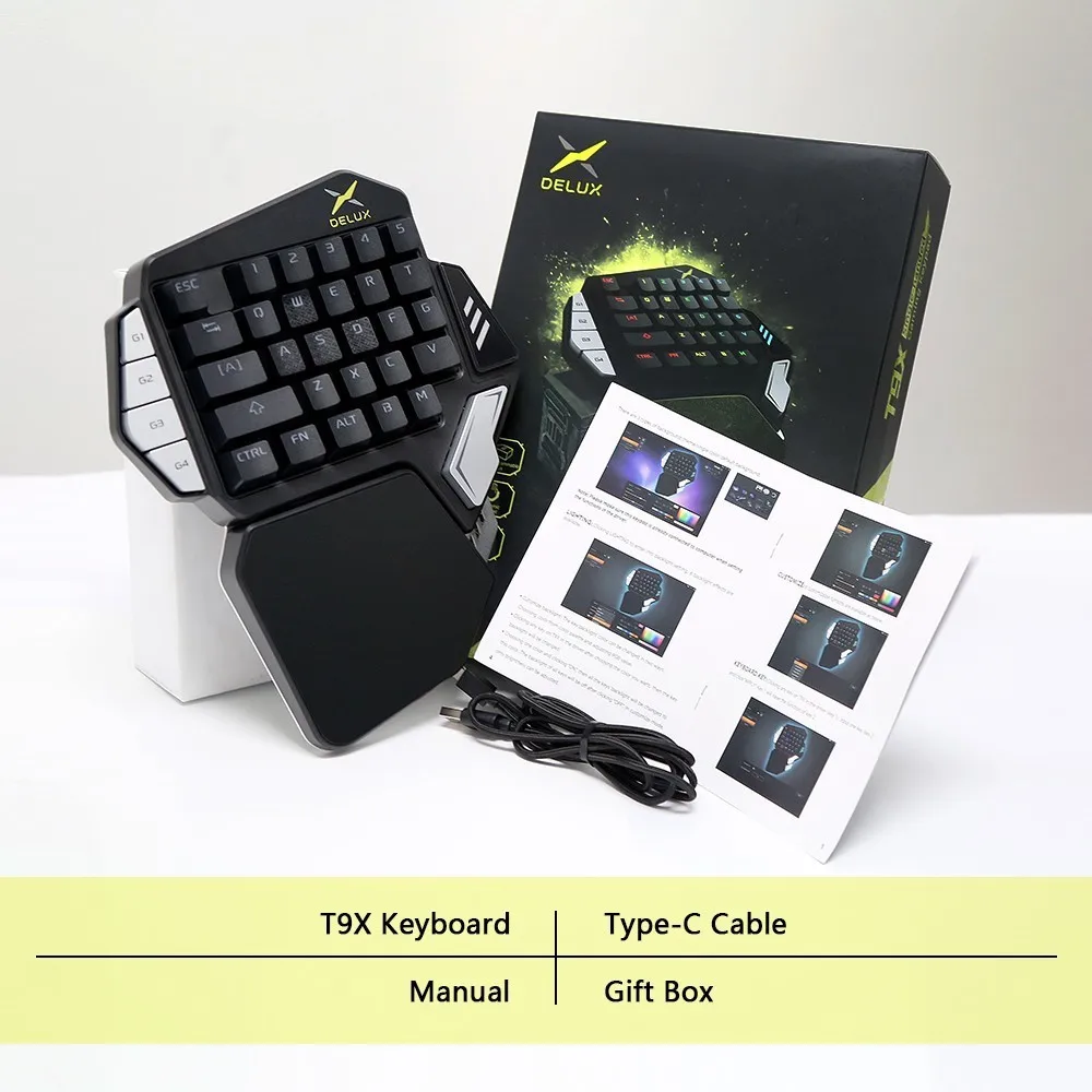 Comprar Delux T9X-Teclado mecánico de Gaming para una sola mano completamente programable con cable USB, retroiluminación RGB para PUBG LOL e-sports