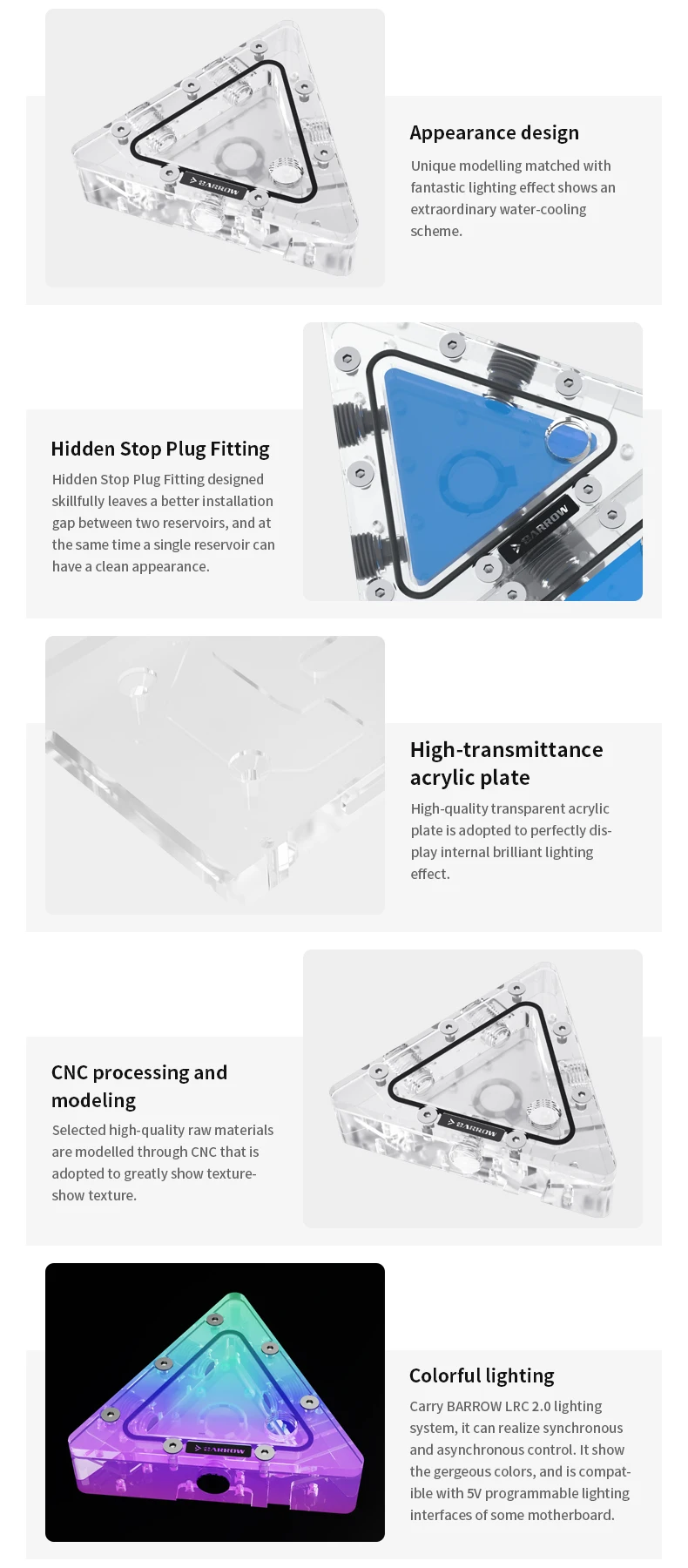 Comprar Depósito, depósito de agua, reservas combinadas triangulares, 5V ARGB 3PIN Materboard AURA SYNC para PC Sistema de refrigeración por agua MOD YKZR-0