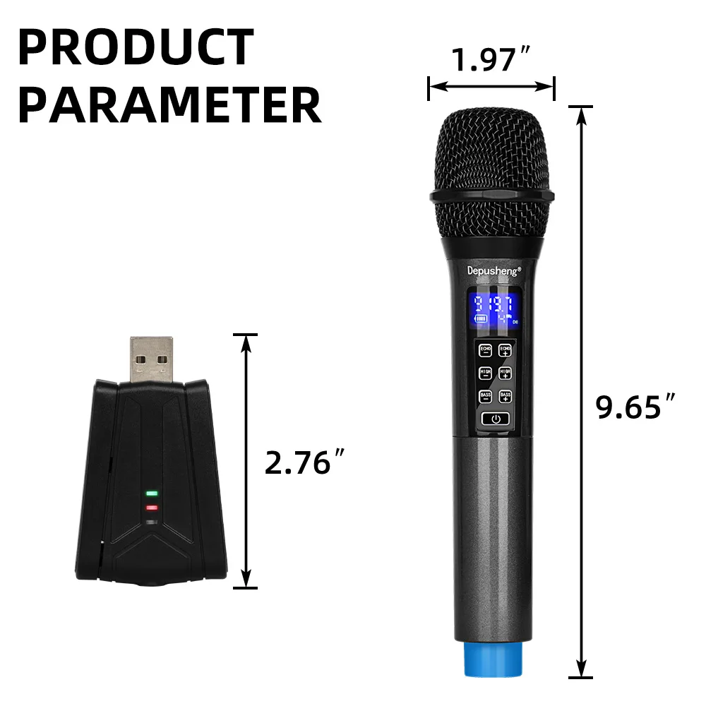 Micrófono inalámbrico Depusheng W4 con Echo Treble Bass y Bluetooth 98 FT Range UHF Sistema de micrófono dinámico de mano portátil