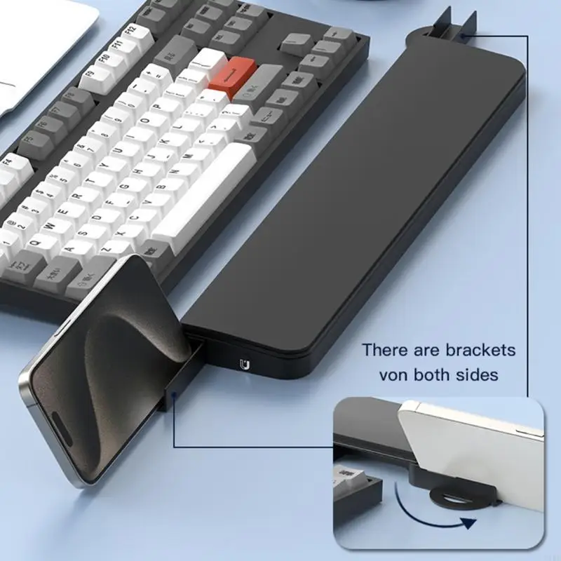Optimiza la limpieza de los espacios de trabajo en oficinas domésticas o configuraciones de juegos al almacenar herramientas de limpieza mientras apoya las muñecas durante las actividades de escritura, codificación o transmisión.