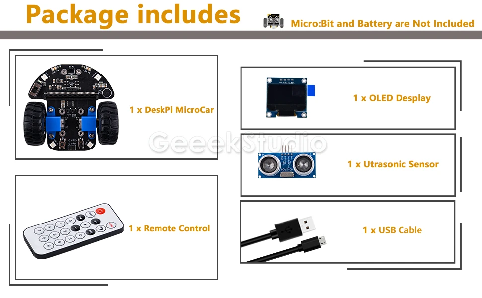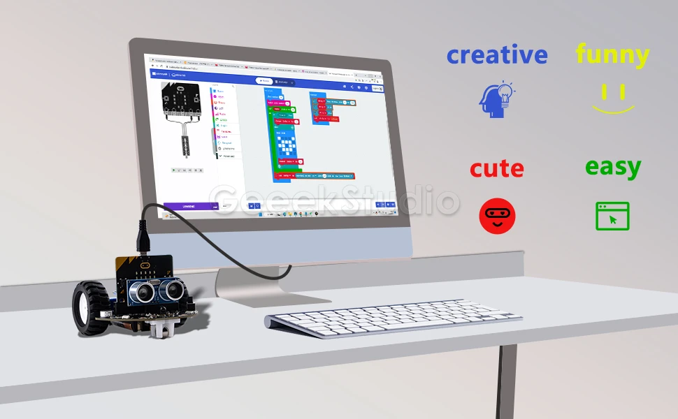 DeskPi MicroCar es un carro inteligente multifuncional y multiusos, basado en microbit. Tiene motores a bordo, sensores ultrasónicos y otros, programados y controlados por Makecode, Adopción del lenguaje de programación gráfica. Este coche es especialmente adecuado para estudiantes con fundamentos de programación cero o débiles. Este coche contiene la introducción del uso de módulos independientes en el carro y la introducción de casos de aplicación integrales, primero aprenda los conceptos básicos y luego la aplicación integral, paso a paso, para mejorar las capacidades prácticas y de programación de los estudiantes.Características del producto