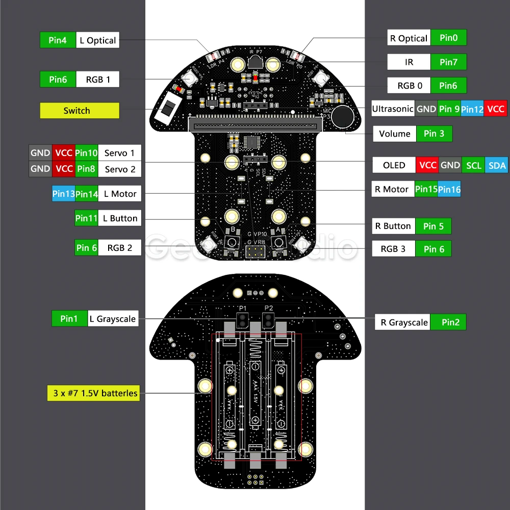 DeskPi MicroCar es un carro inteligente multifuncional y multiusos, basado en microbit. Tiene motores a bordo, sensores ultrasónicos y otros, programados y controlados por Makecode, Adopción del lenguaje de programación gráfica. Este coche es especialmente adecuado para estudiantes con fundamentos de programación cero o débiles. Este coche contiene la introducción del uso de módulos independientes en el carro y la introducción de casos de aplicación integrales, primero aprenda los conceptos básicos y luego la aplicación integral, paso a paso, para mejorar las capacidades prácticas y de programación de los estudiantes.Características del producto