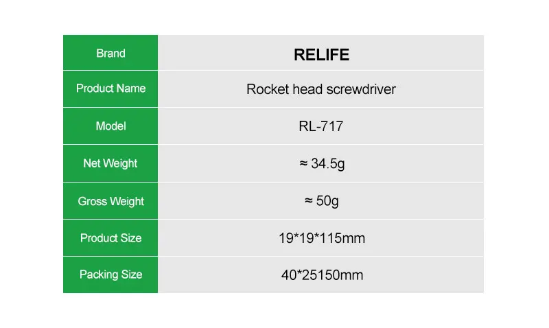 Destornillador de cabeza cohete RELIFE RL-717