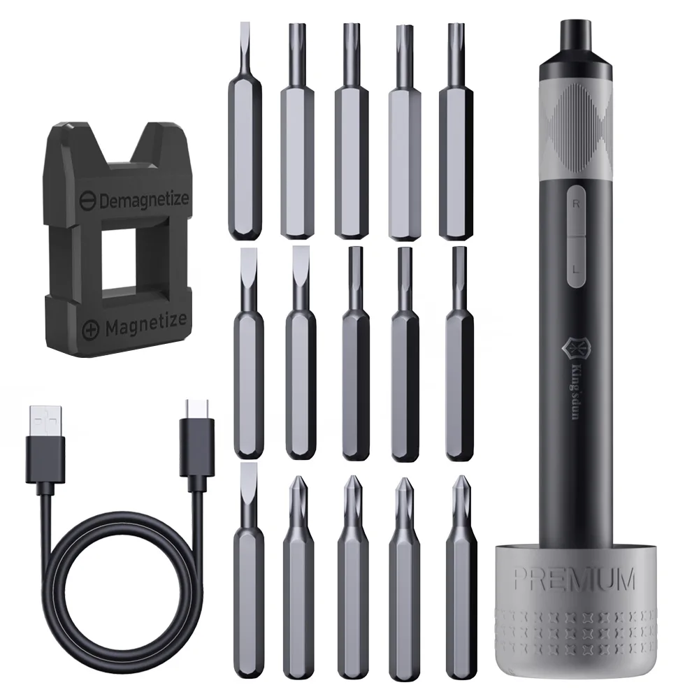 1. Juego de destornilladores de reparación eléctrica de precisión de par medio. 2. S2 15 bits de acero, base de goma suave para almacenamiento. 3. Fuerte adsorción magnética, resistente al desgaste y duradero, antioxidante. 4. Es adecuado para el mantenimiento de productos mecánicos de alta precisión como teléfonos móviles, ordenadores, gafas, relojes y cámaras. 5. La capacidad de la batería es de 800mAh, la velocidad de salida es de 200RPM, el par máximo puede alcanzar: 3.5n. M 6. Par de segunda marcha grande y pequeño, conmutación de un solo paso, interfaz de carga universal tipo C.Imágenes detalladas