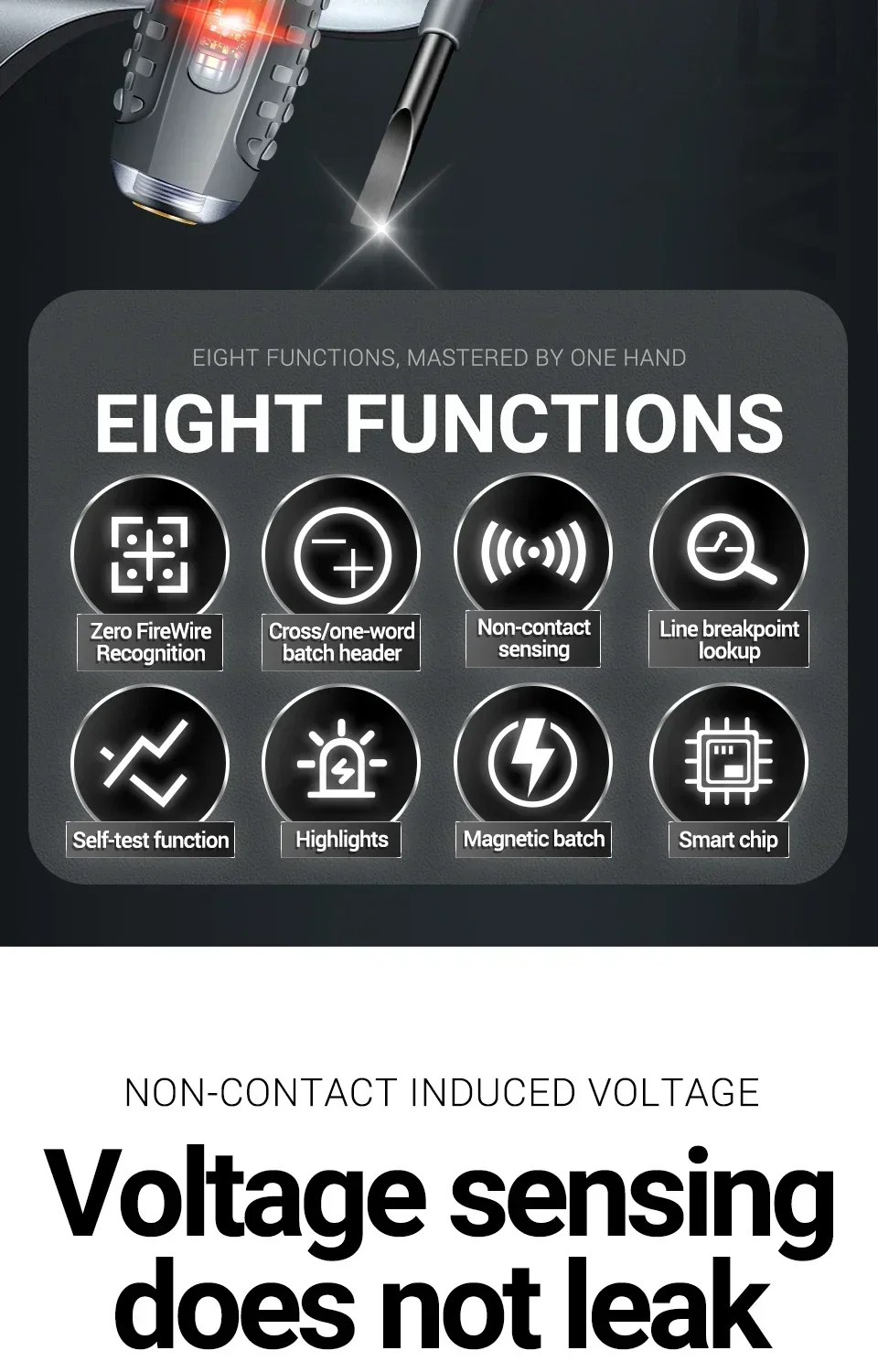 (2) Detección de voltaje: la luz verde se encenderá cuando se detecte un voltaje.