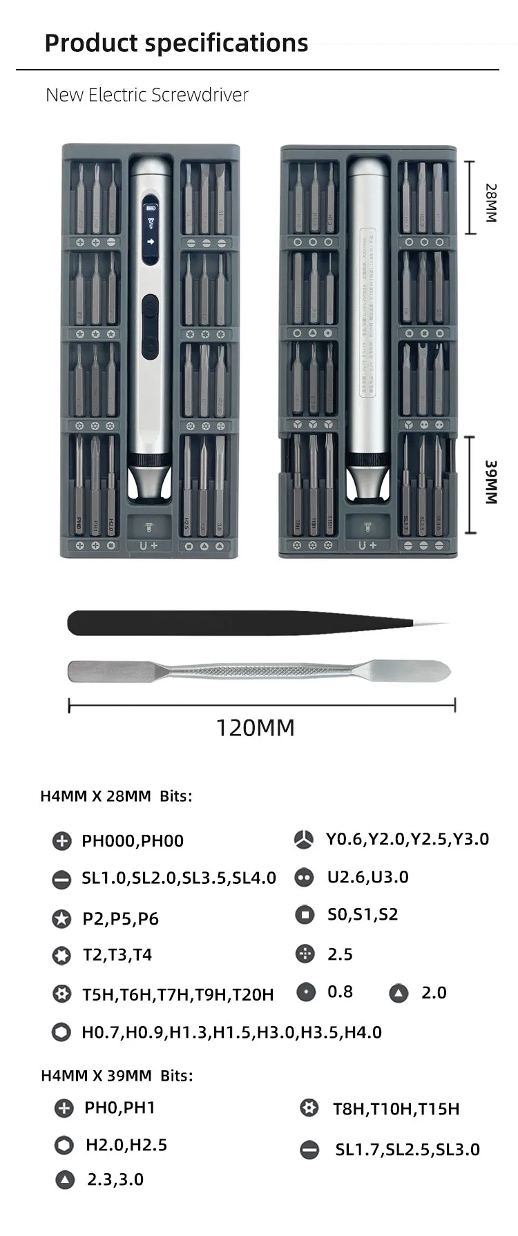 Destornillador eléctrico de precisión para portátil Kit de reparación móvil Herramienta completa Multi-herramienta recargable