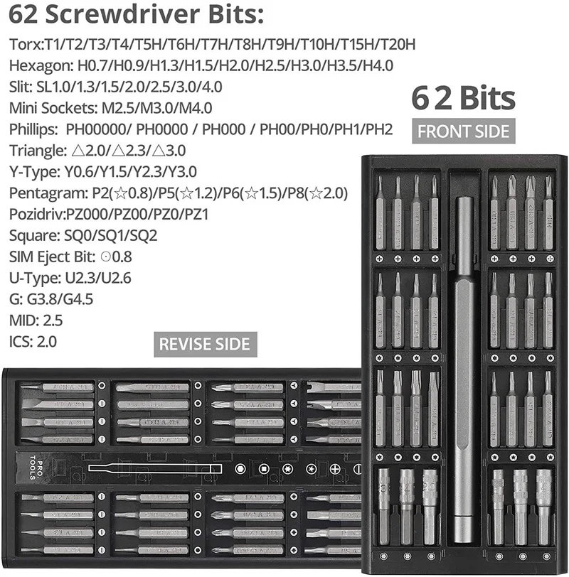 Peso: Apprex.400G 64 en 1 Juego de destornilladores brocas de destornillador magnéticas de precisión broca hexagonal