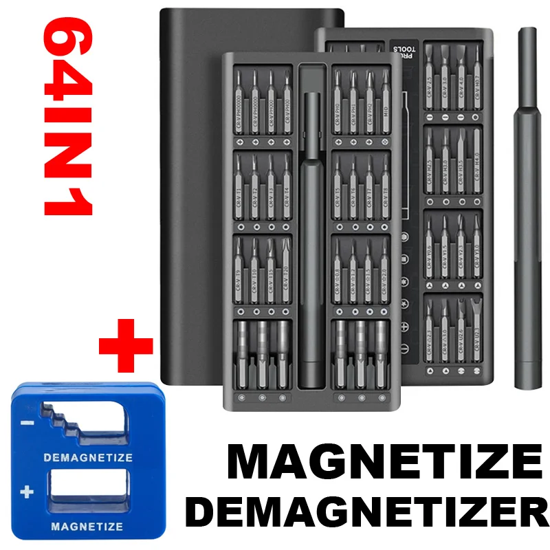 Comprar Destornillador eléctrico de teléfono 64 en 1, herramientas de reparación y desmagnetizador magnético, dos velocidades, bricolaje