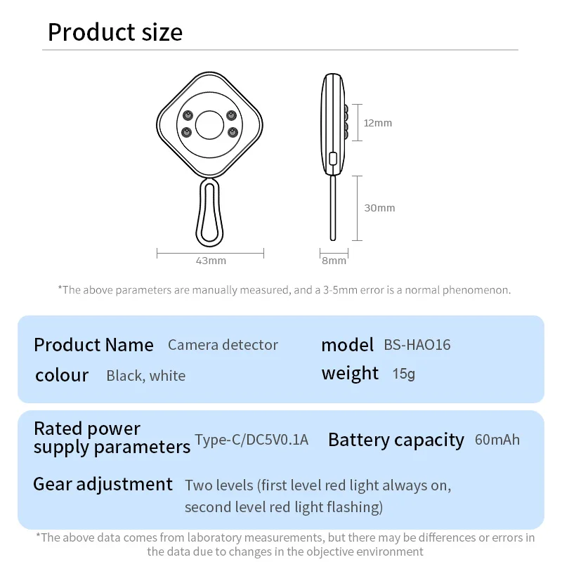 Detector de cámara oculta antiespía, detección de infrarrojos portátil, protección de seguridad para vestuario de Hotel, baño público