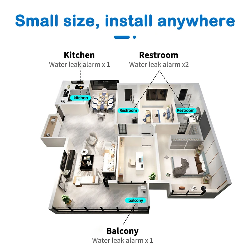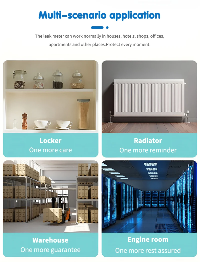 【Aplicación multiescena 】El detector de fugas de agua puede funcionar normalmente en casas, hoteles, tiendas, oficinas y apartamentos. Protege cada momento.