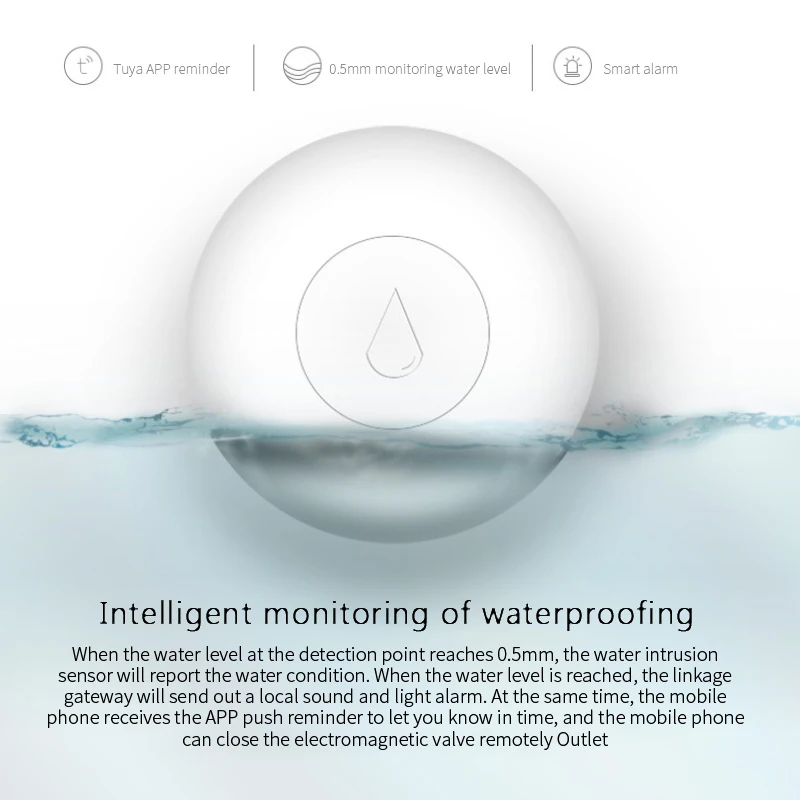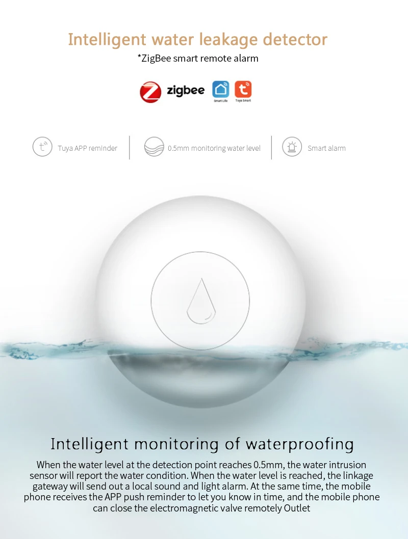 Comprar Detector de fugas de agua Tuya ZigBee, Sensor de inundación de agua, alarma, monitoreo remoto por aplicación Smart Life, funciona con Alexa y Google Home
