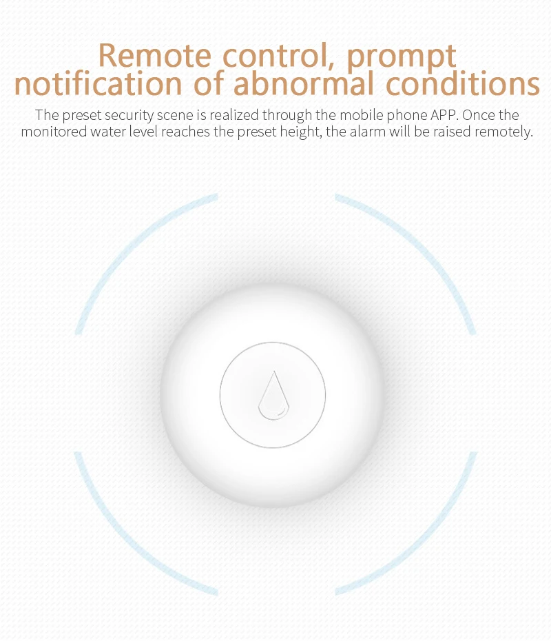 【Nueva detección】Módulo de detección avanzado, detección de cuerpo de agua en tiempo real. Cuando el agua estancada fluye sobre los dos polos de la sonda, se enviará un mensaje de alarma a la puerta de enlace inmediatamente.