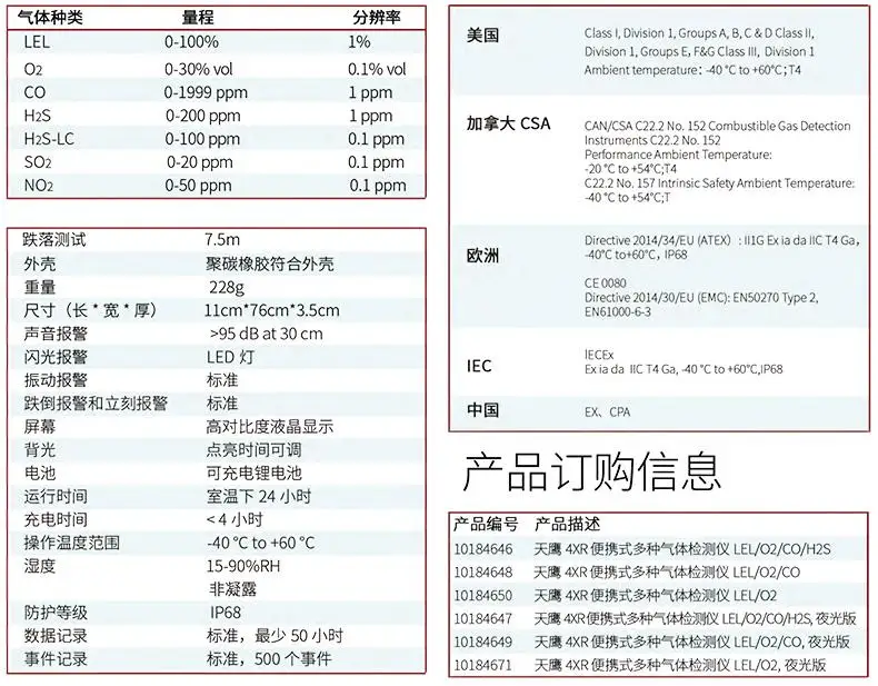 Tiempo de respuesta rápido: Tiempo de respuesta típico 15 segundos, tiempo típico para la calibración simultánea de cuatro gases 60 segundos; La vida útil de los sensores es extremadamente larga, generalmente superior a 4 años;