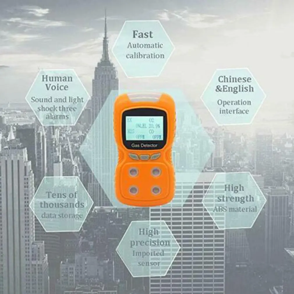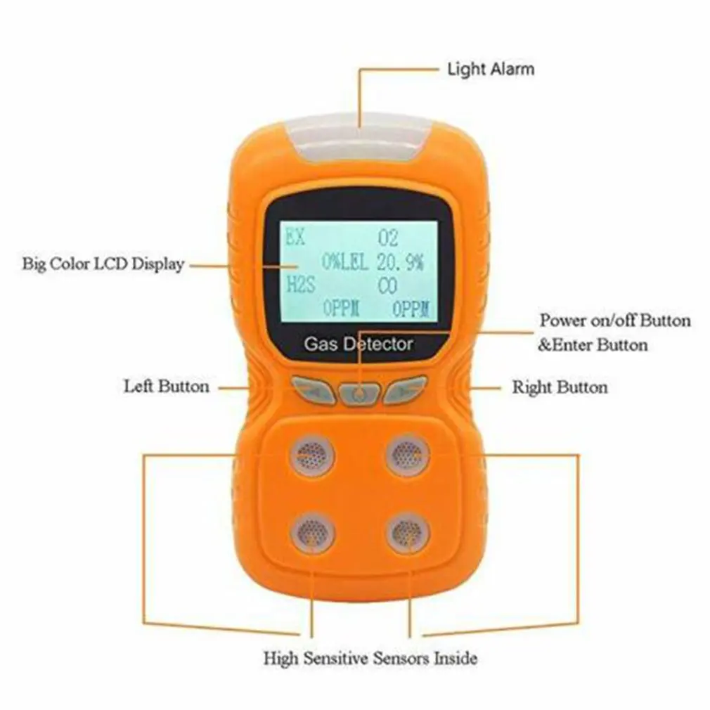 Comprar Detector multigas portátil, medidor de Gas O2 H2S CO LEL 4 en 1, oxígeno, hidrógeno, sulfuro, monóxido de carbono, Detector de fugas de Gas Combustible