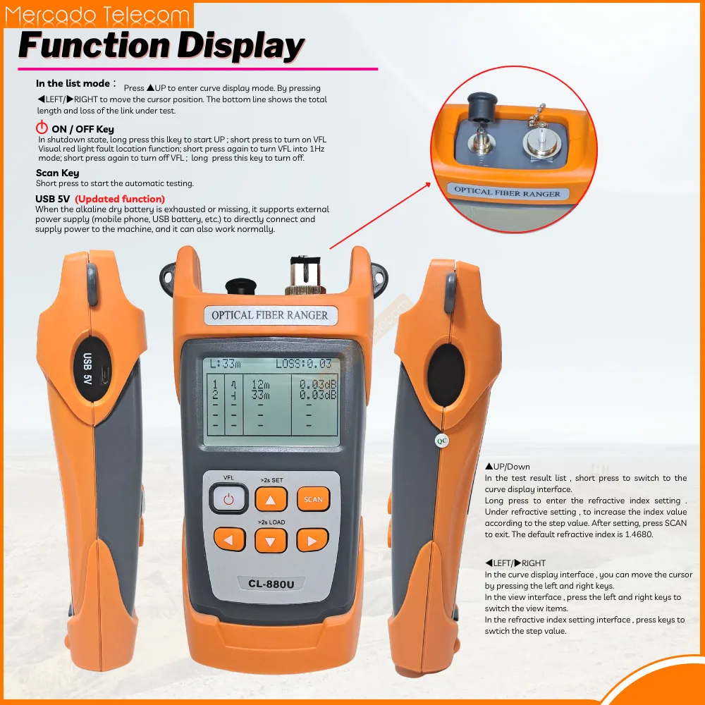 Comprar Detector de obstáculos de cable de fibra óptica CL880U OTDR de mano 60km, probador de punto de interrupción de fibra de 1550nm
