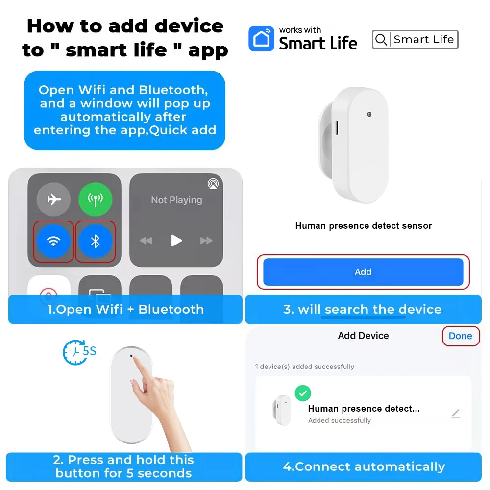 Upgraded version Mmwave 24G Radar, radar for more accurate detection.support breathing, micro movement, movement detetion,can penetrate glass walls, implement more automation scenarios.Version for you to choose:Human Presence Sensor X 1