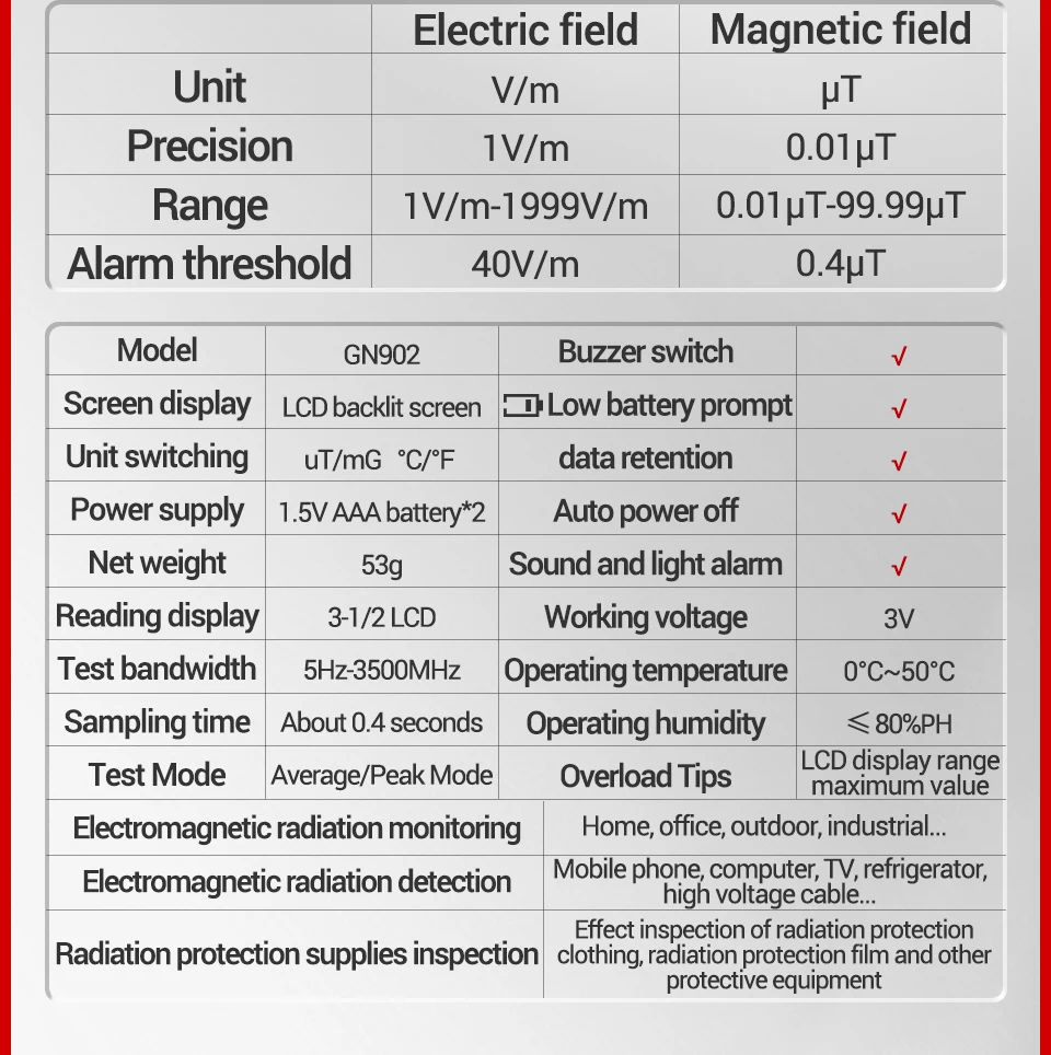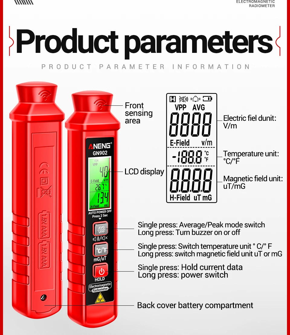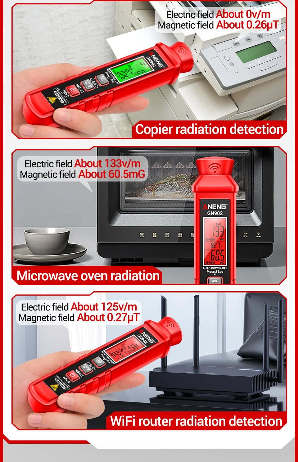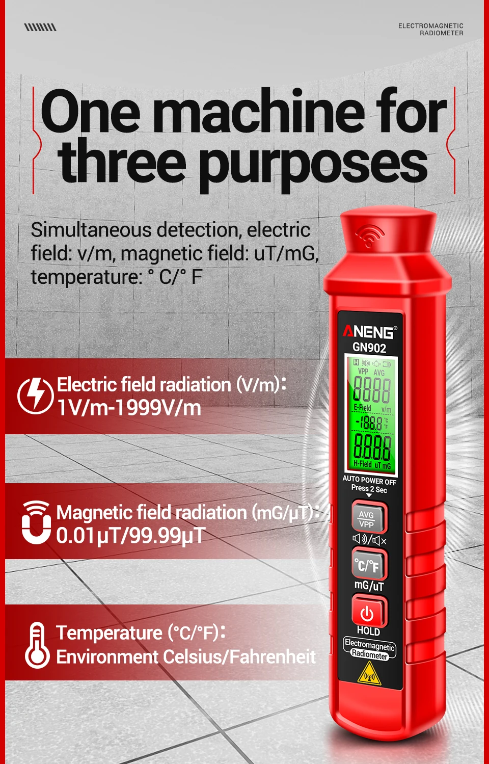 Comprar Detector de radiación electromagnética ANENG GN902, probador de campo de radiación de temperatura, herramientas de prueba de instrumentos de medición portátiles