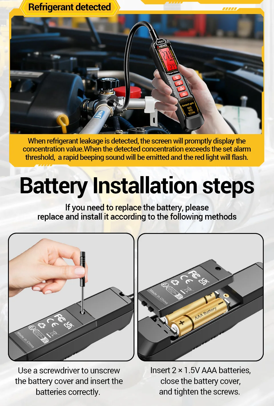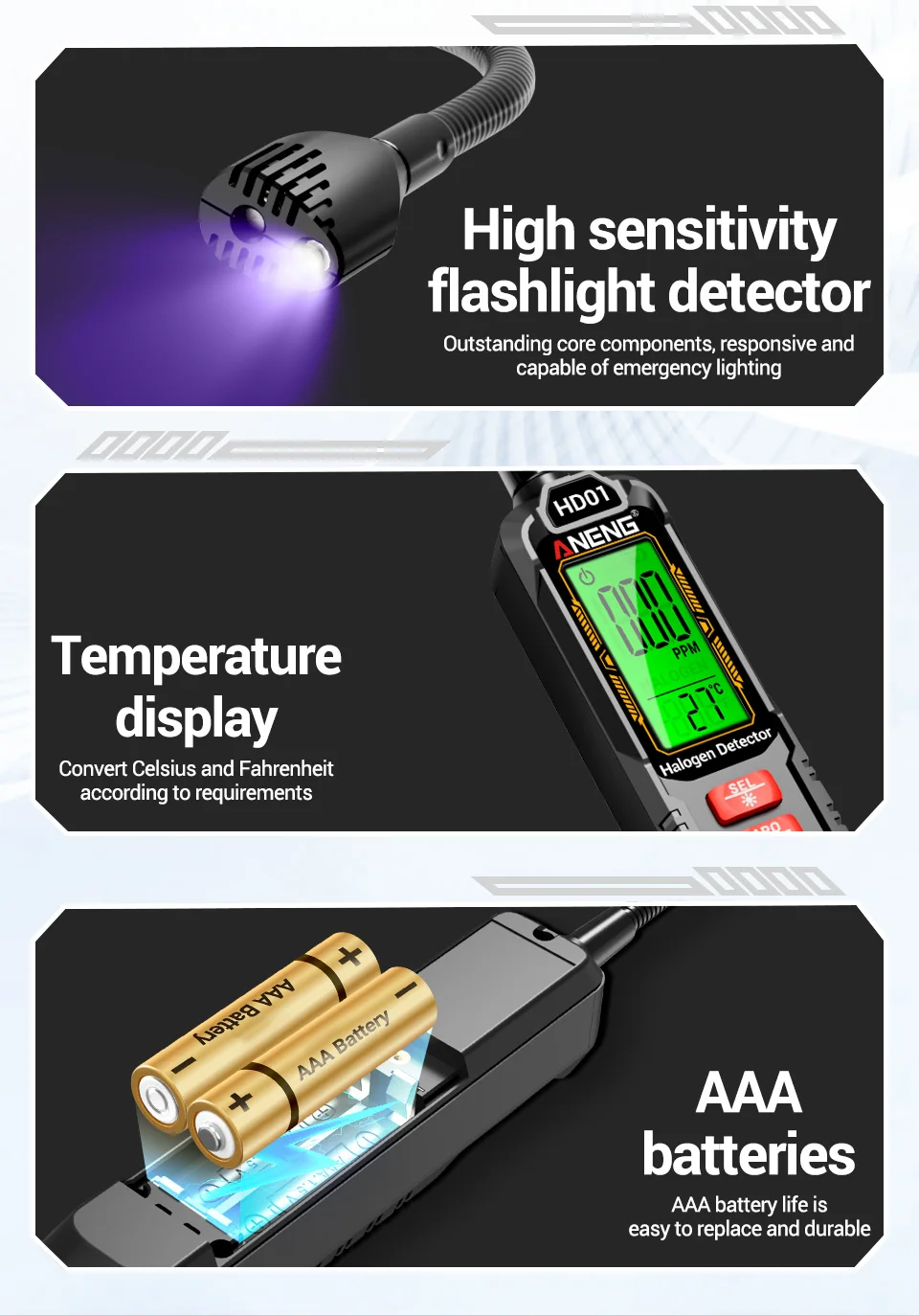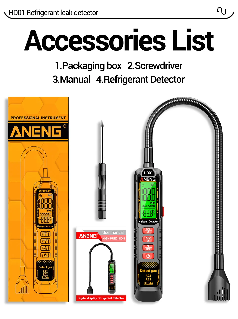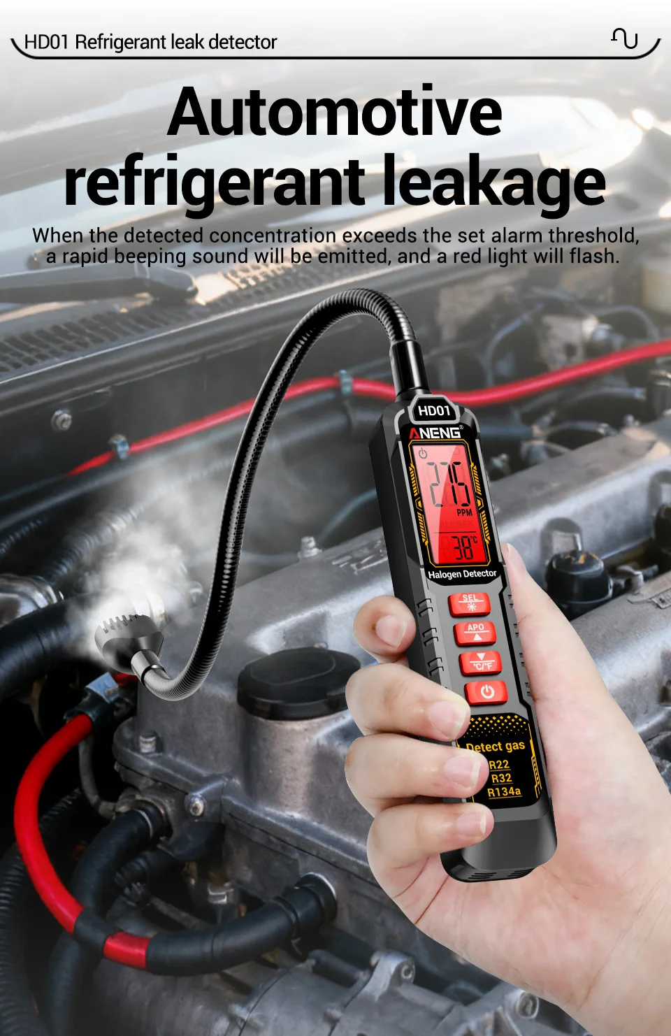 ANENG Detector profesional de fugas de Gas Refrigerante, pantalla de aire acondicionado/automático, detección R22/R32/R134a, herramientas de alarma Visual Audible