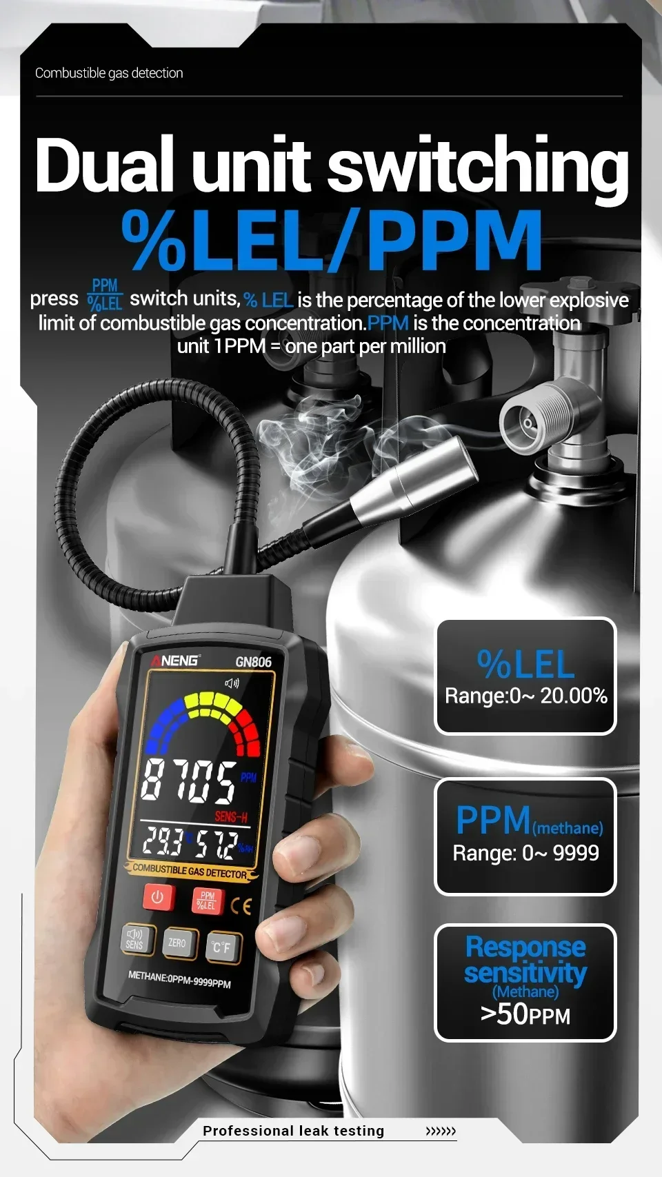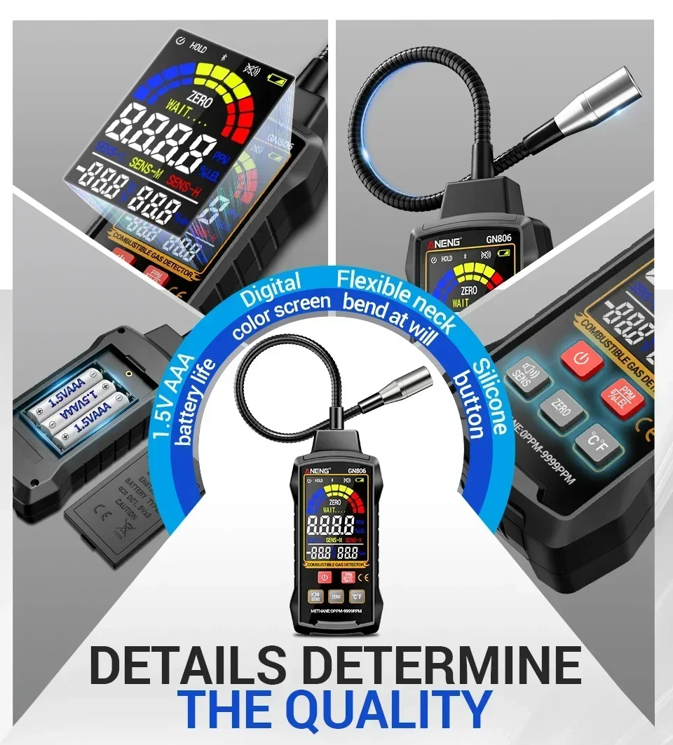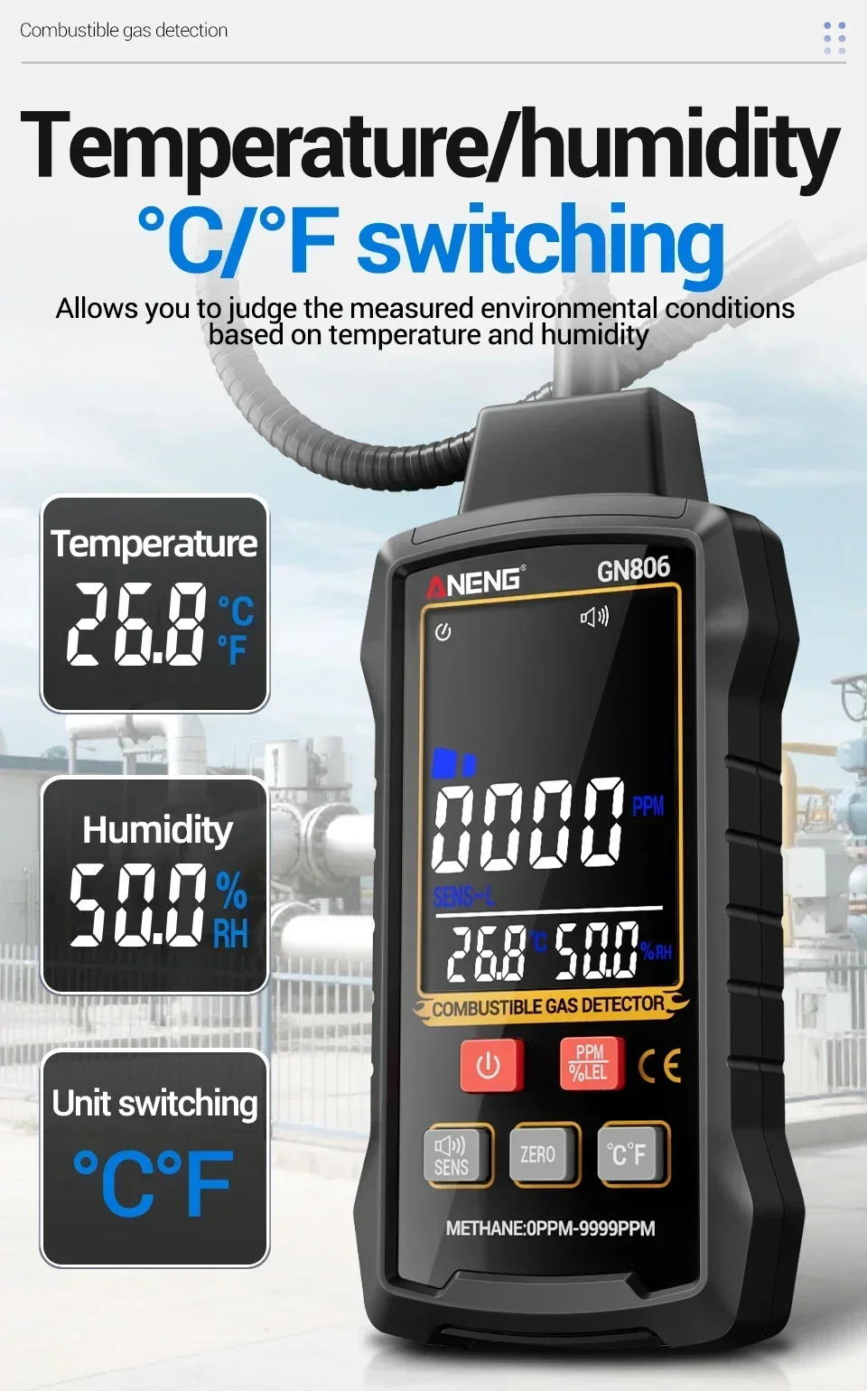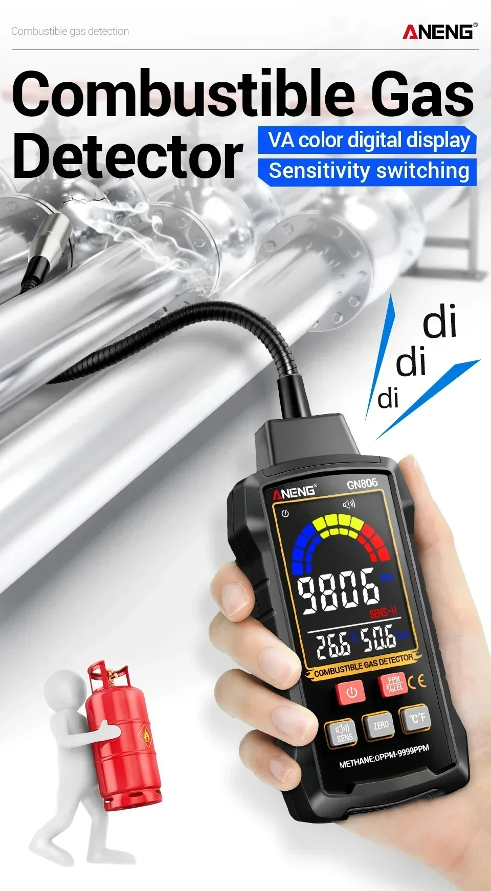 Detectores de fugas de Gas detectable múltiple ANENG GN806 9999PPM pantalla Digital probador Natural combustible pantalla LCD luz de sonido Alar