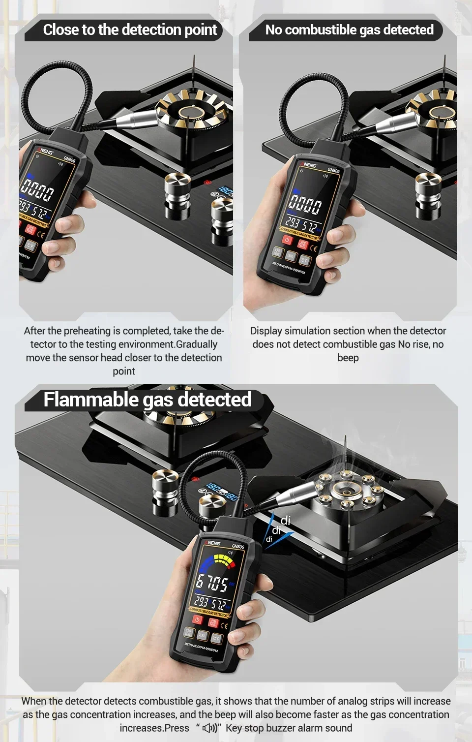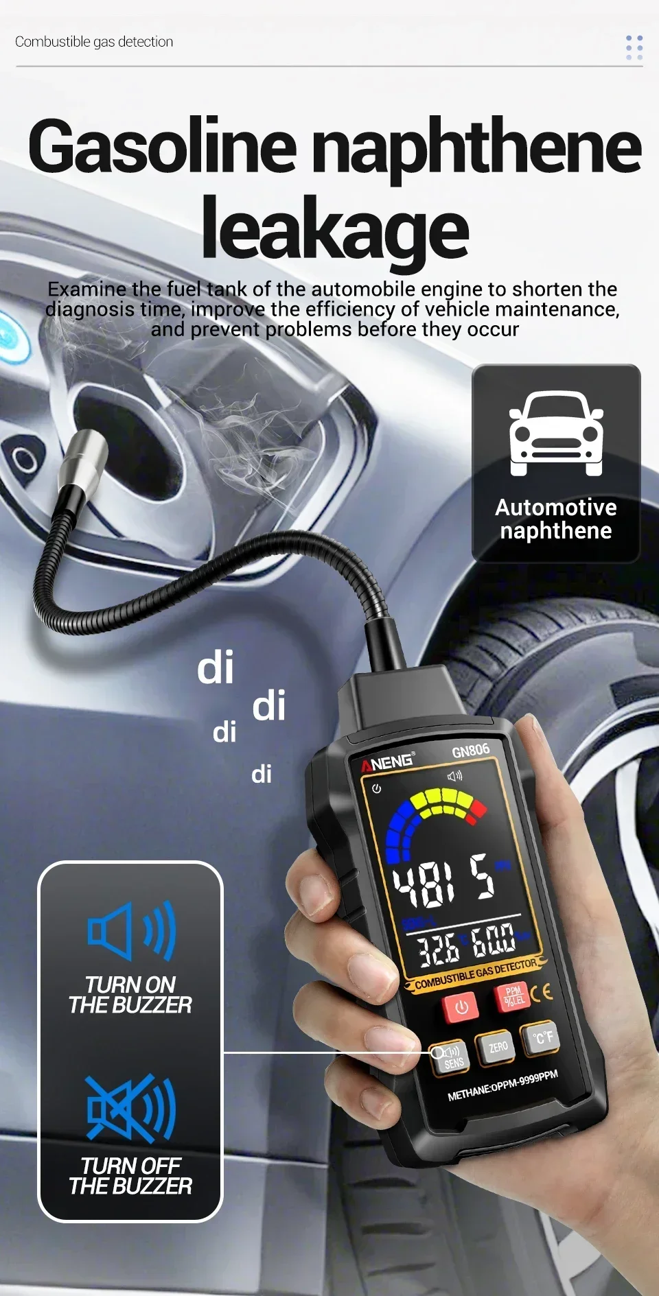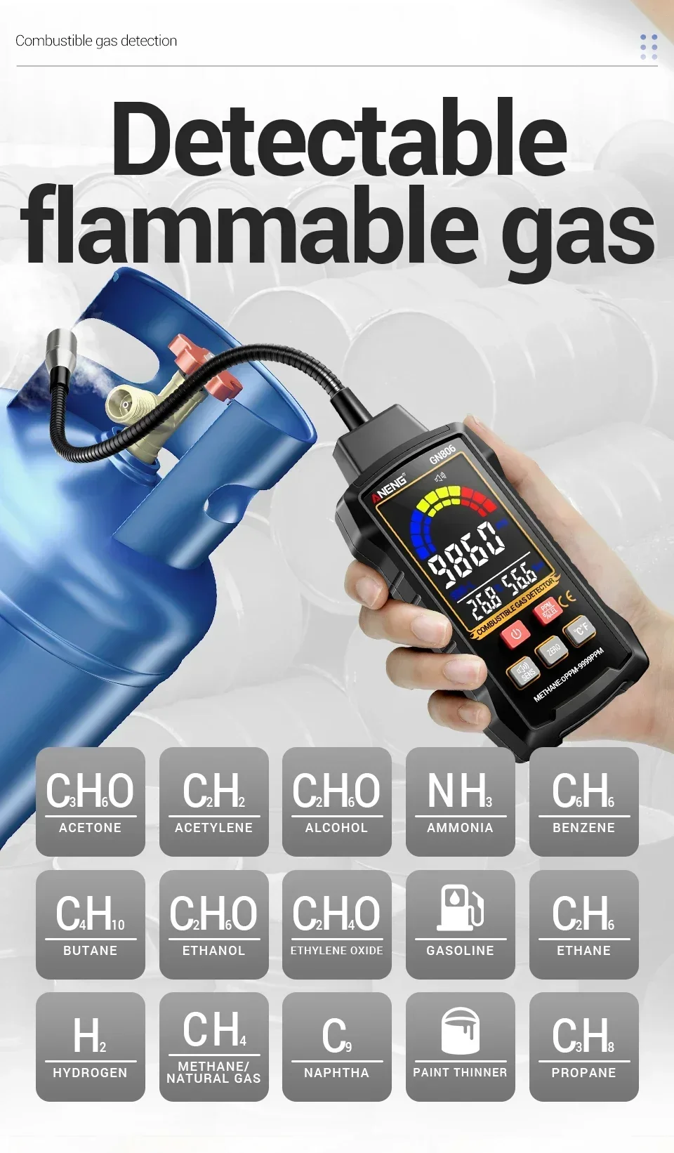 Detectores de fugas de Gas detectable múltiple ANENG GN806 9999PPM pantalla Digital probador Natural combustible pantalla LCD luz de sonido Alar