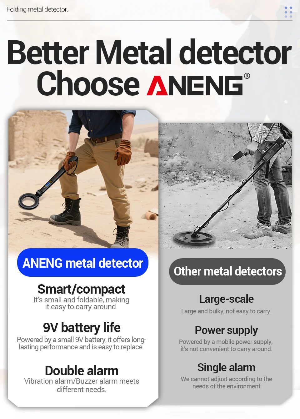 ANENG DM3005BDetector de metales portátil detección rápida zumbador alarma de vibración pantalla retroiluminada azul LED herramientas de prueba plegables