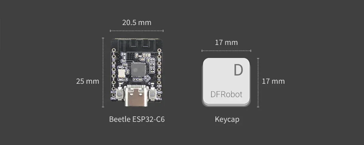 Figura: Comparación del tamaño entre Beetle ESP32-C6 y la tecla