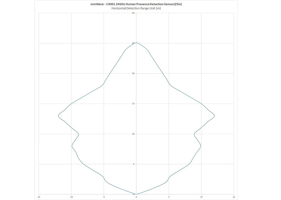 El sensor de presencia de onda milimétrica C4001 utiliza una señal de longitud de onda de 24 GHz.Tiene un rango de detección de 100° horizontalmente, con un rango de detección de presencia de 16 metros y un rango de detección de movimiento y medición de distancia de 25 metros.Es adecuado para proyectos de detección de presencia humana, monitoreo ambiental y monitoreo en tiempo real.