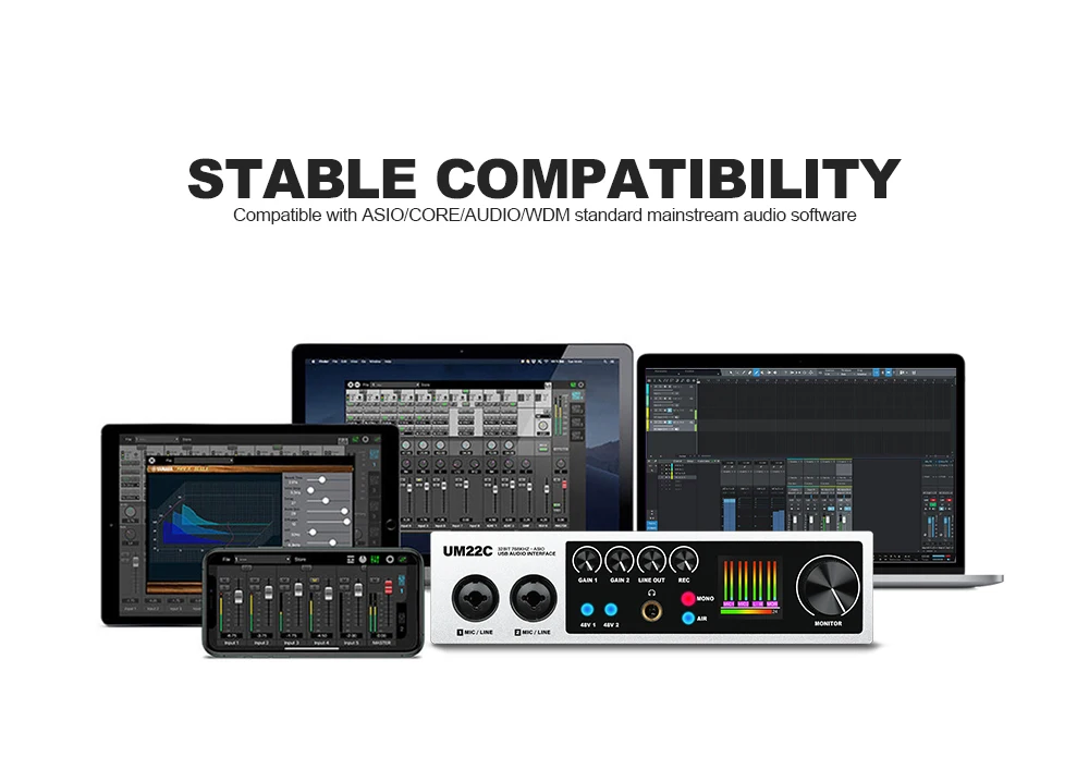 【Transmisión estable y compatibilidad】- Con una conexión USB-C 3.0, el UM22C proporciona una transmisión estable y una compatibilidad excepcional.Con una rápida transferencia de datos, baja latencia y soporte de audio de alta resolución, crea una experiencia de audio superior.Además, el UM22C es compatible con sistemas Windows y MacOS, lo que le ofrece mayor flexibilidad y comodidad para su grabación de audio y sus esfuerzos creativos.