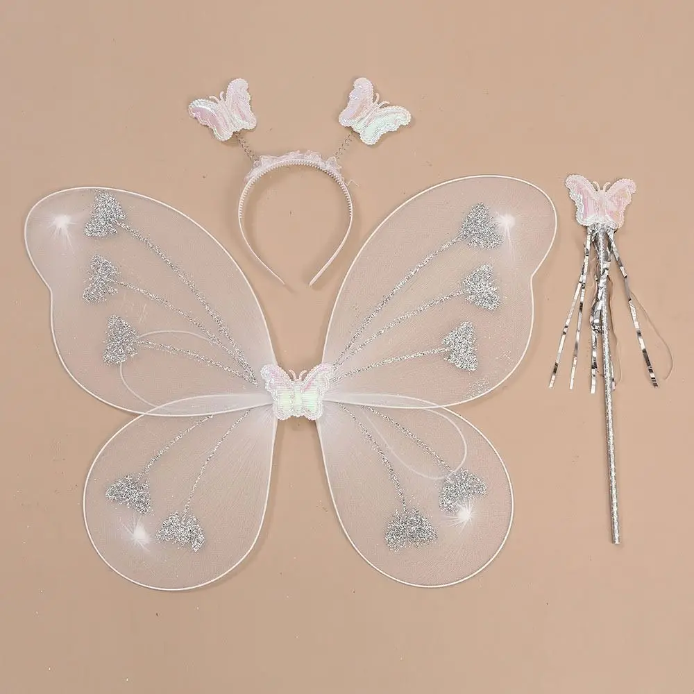 Comprar Diadema de mariposa con purpurina para niños, alas, varita, traje de fotografía, accesorios de cuento de hadas, 3 piezas por juego