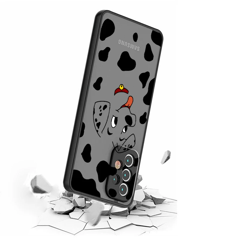 Dibujos animados de perro manchado, diseño 101, translúcido esmerilado para Samsung A53, A52, A33, A32, A51, A71, A21S, A13, A73, A50, A22, A12, 5G, mate
