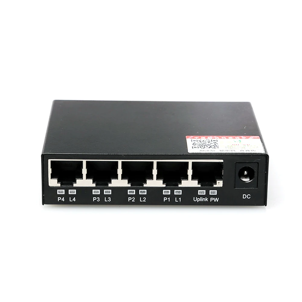 Cantidad de terminales: 5 terminales RJ45 de 10/100mbps, 4 terminales POE