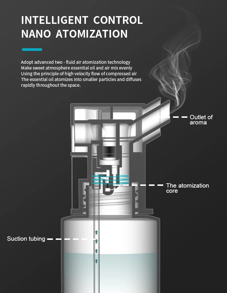2.La máquina Adopta tecnología sin agua avanzada de la atomización a nebulizing el aceite esencial para lanzar la nano-partícula minúscula en el aire, así que usted puede conseguir la mayoría de las ventajas olfactivas y terapéuticas. Sistema de Fragancia pura es mejor para los niños y mascotas.