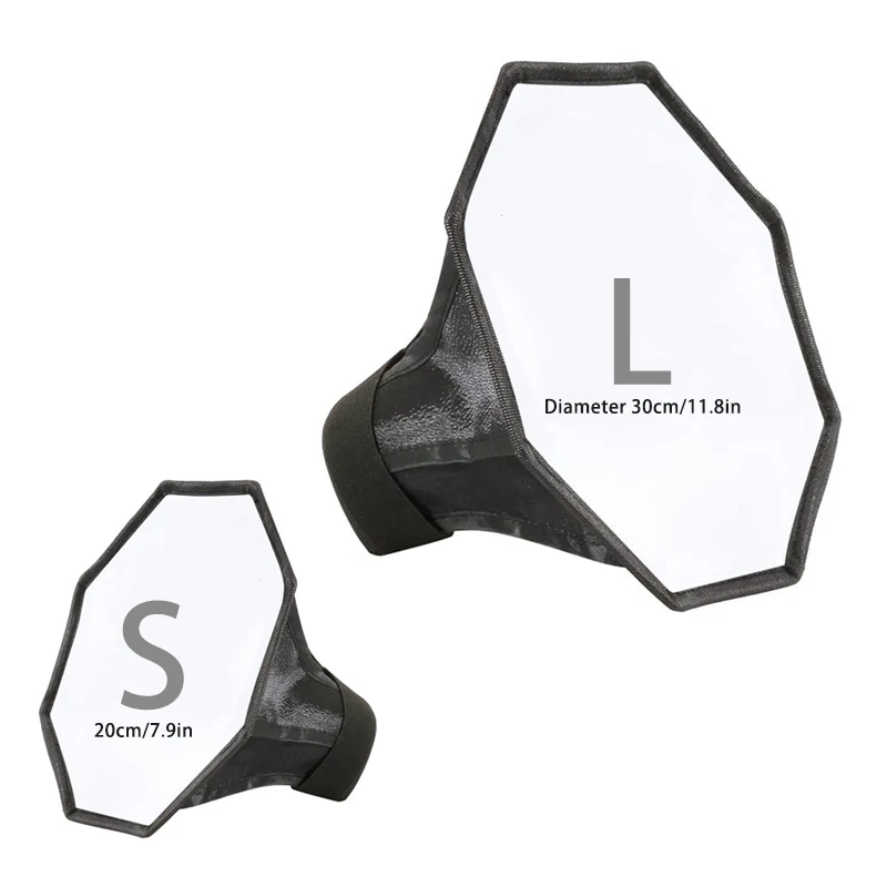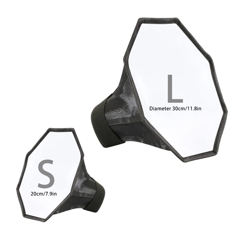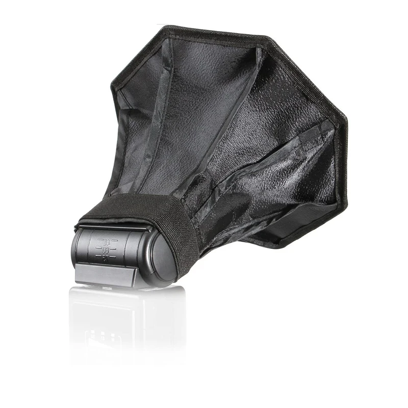 La apertura elástica le permite conectar el difusor a la mayoría de los flashes de montaje de zapatos, adecuados para Canon, Nikon, Minolta, Contax, Sony, Olympus, Sunpak, Pentax, etc.