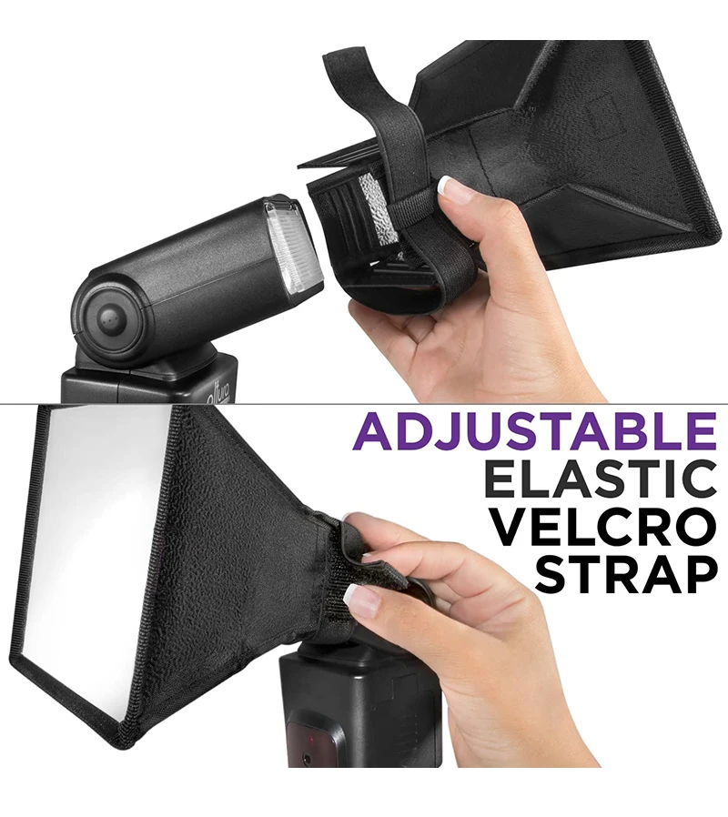 La apertura elástica le permite conectar el difusor a la mayoría de los flashes de montaje de zapatos, adecuados para Canon, Nikon, Minolta, Contax, Sony, Olympus, Sunpak, Pentax, etc.
