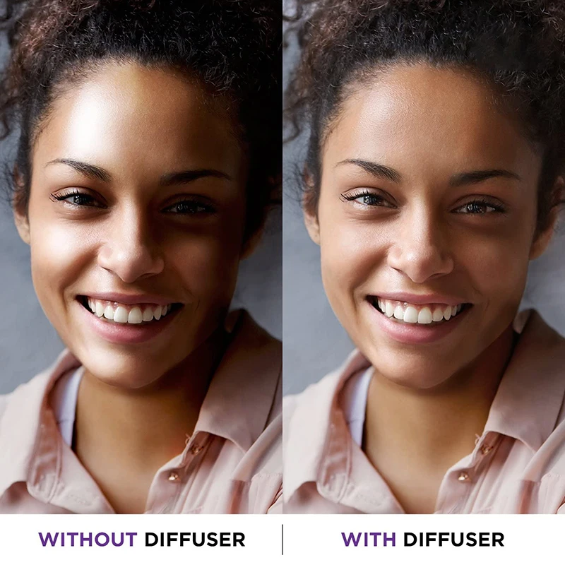 El material de difusión extiende la luz uniformemente sobre tu tema, evitando sombras duras.