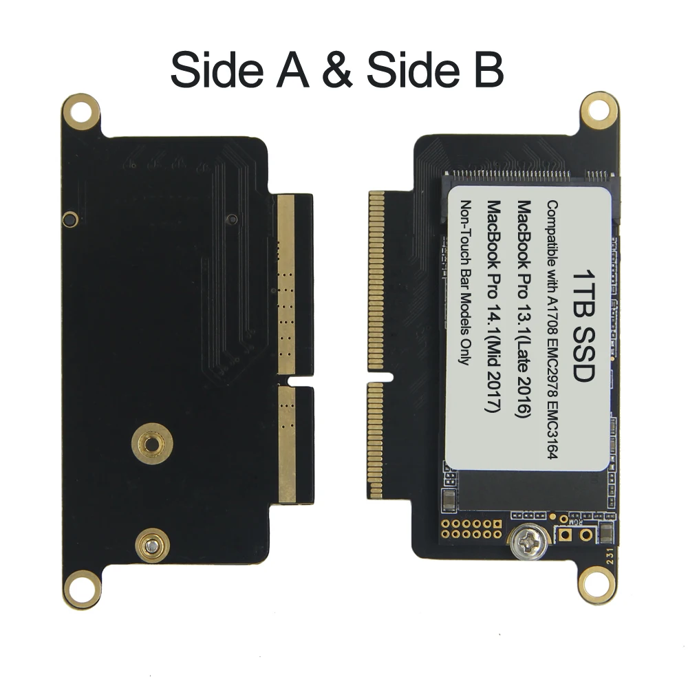 The SSD is compatible with Late2016- Mid2017 13.3" MacBooK Pro Retina A1708. EMC 2978, EMC 3164