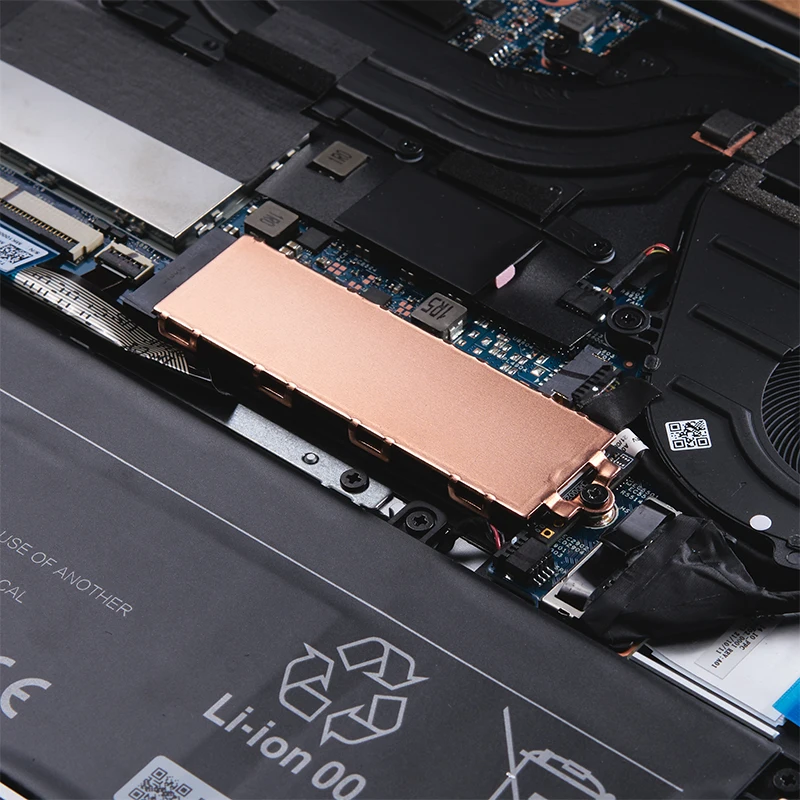(Las piezas pequeñas se pueden conectar con precisión al control principal y a los chips de caché de las unidades de estado sólido, lo que proporciona una conducción de calor más precisa)