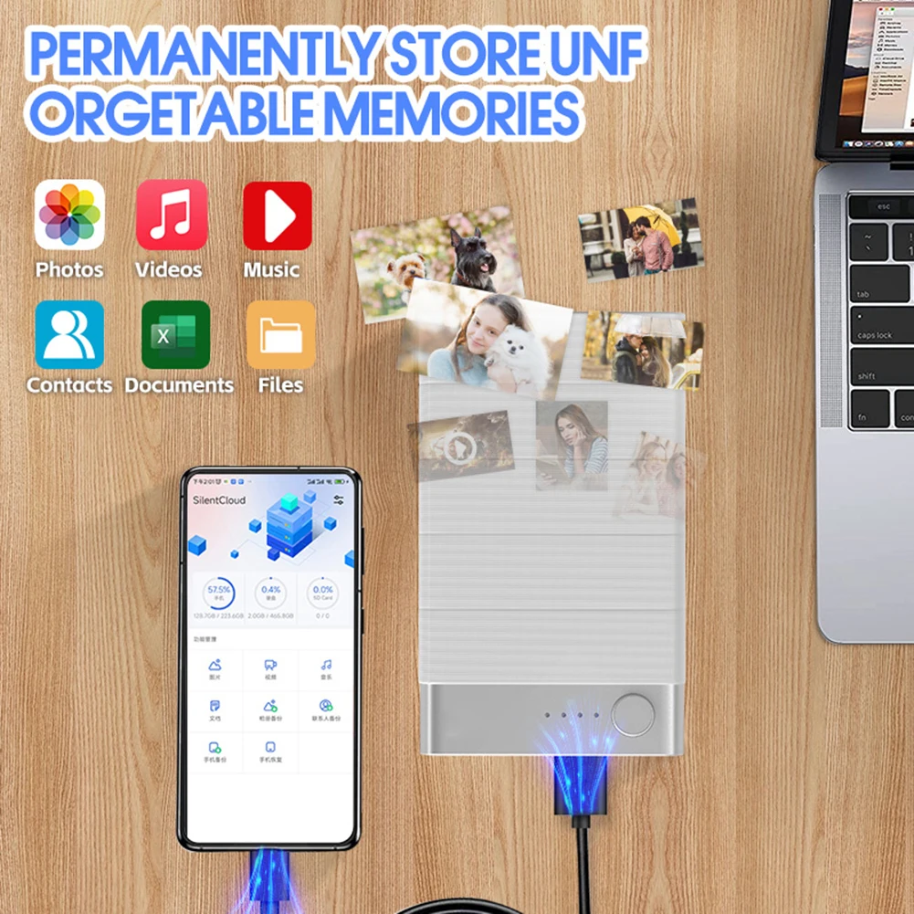 3. Copia de seguridad rápida y segura:El disco duro externo portátil ofrece una forma rápida y segura de hacer copias de seguridad de las fotos, vídeos y contactos de su teléfono inteligente. Está diseñado para funcionar sin problemas para Android y compatible con dispositivos iOS, lo que garantiza que sus datos estén siempre seguros.