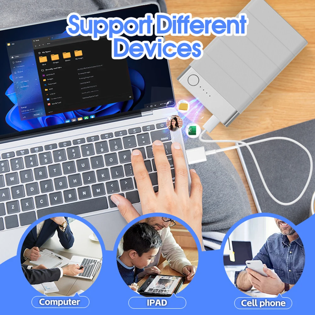 1. Fácil de usar:El disco duro externo para fotos viene con una batería integrada de 5000mAh, lo que lo hace conveniente y fácil de usar. También puede cargar su teléfono, proporcionando funcionalidad adicional sobre la marcha.
