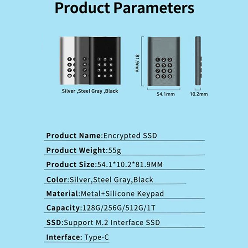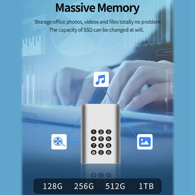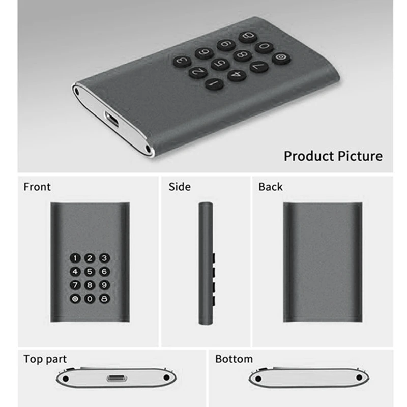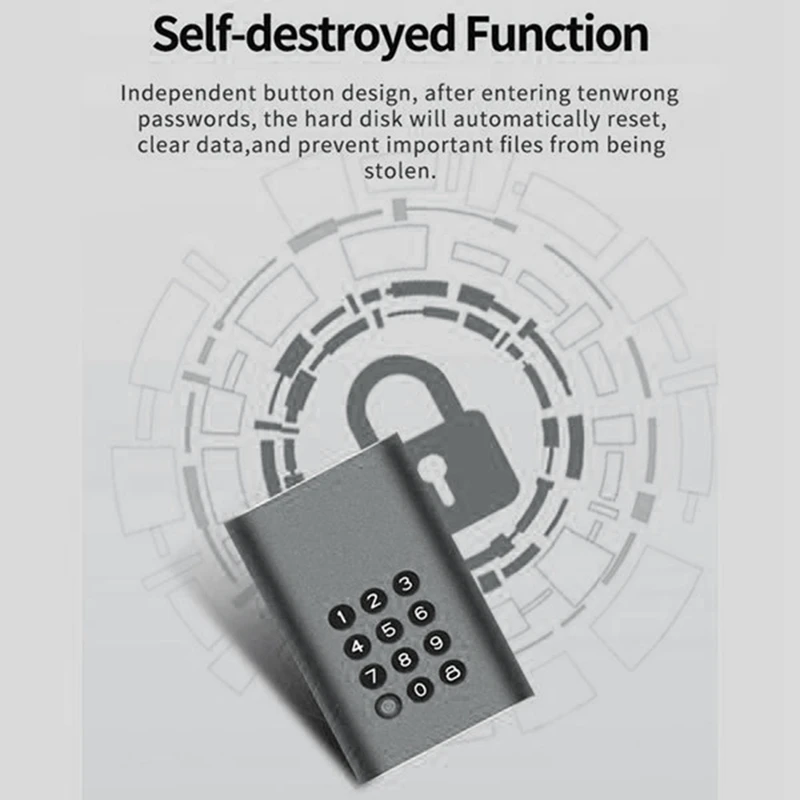 1. Botón de bloqueo de contraseña (tenga en cuenta que después de 10 entradas de contraseña incorrectas, el disco duro se restablece automáticamente y los datos se borrarán)